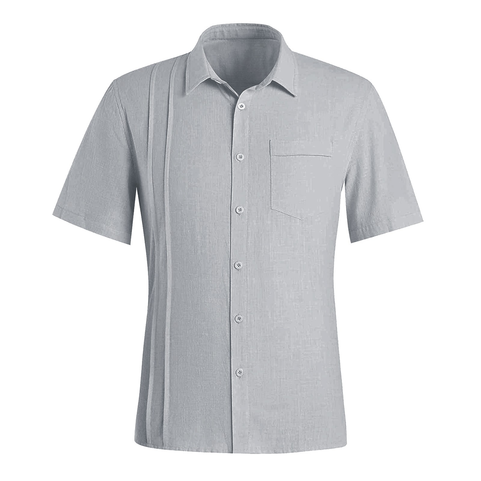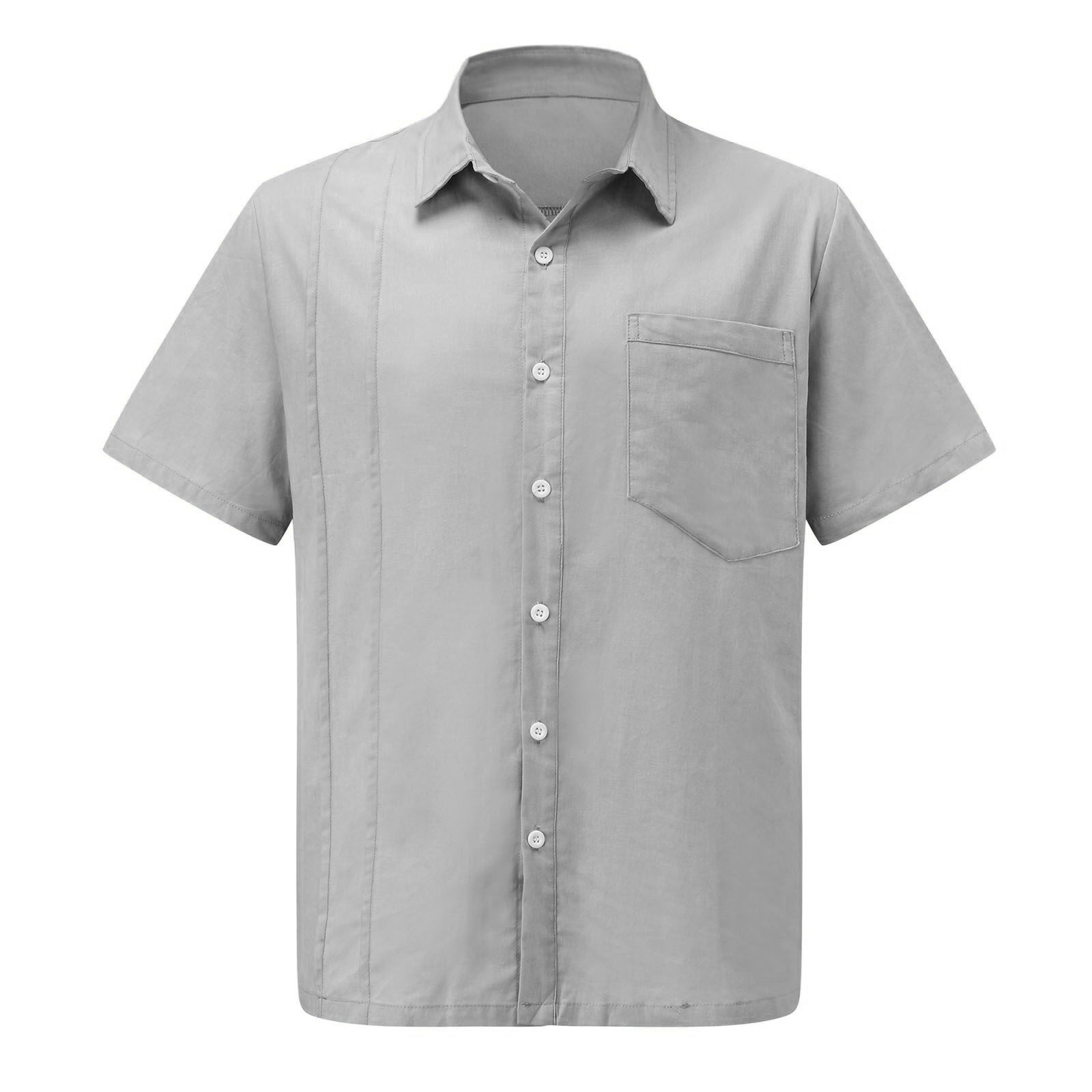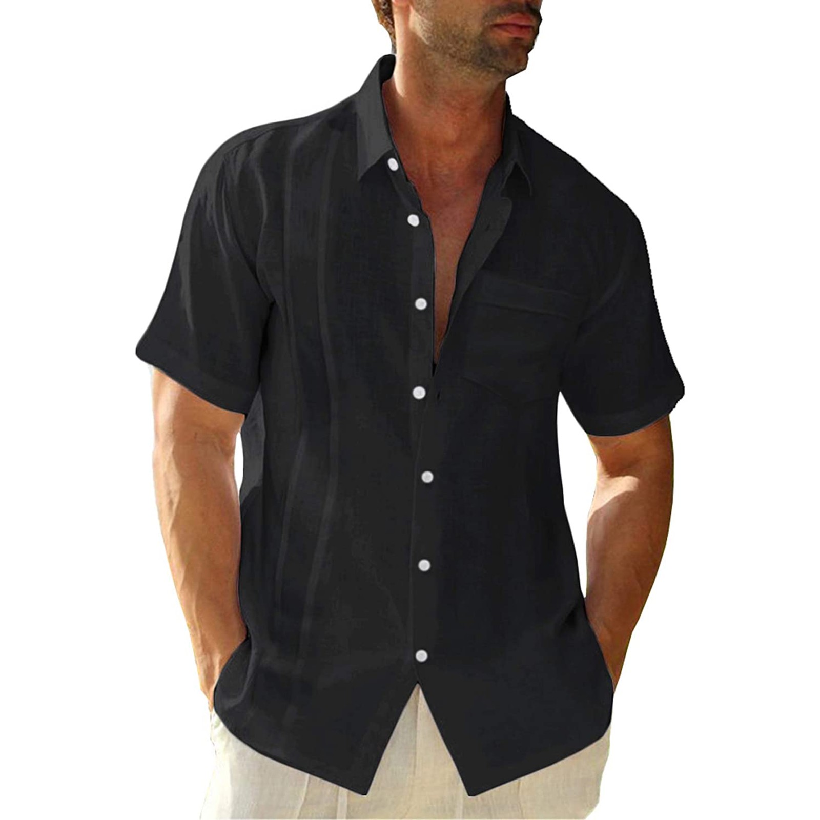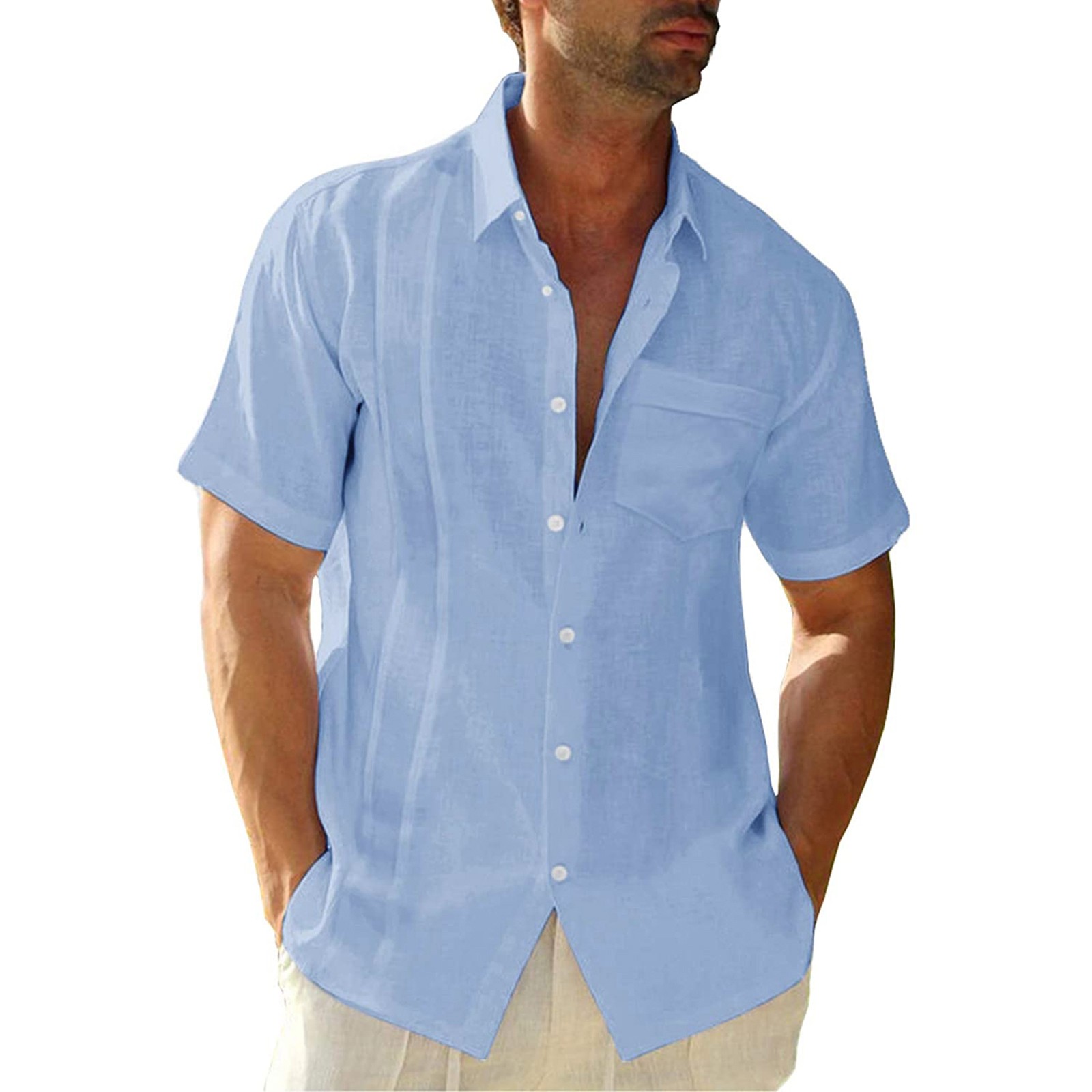 Мужская летняя рубашка из хлопка и льна с короткими рукавами и нагрудным карманом