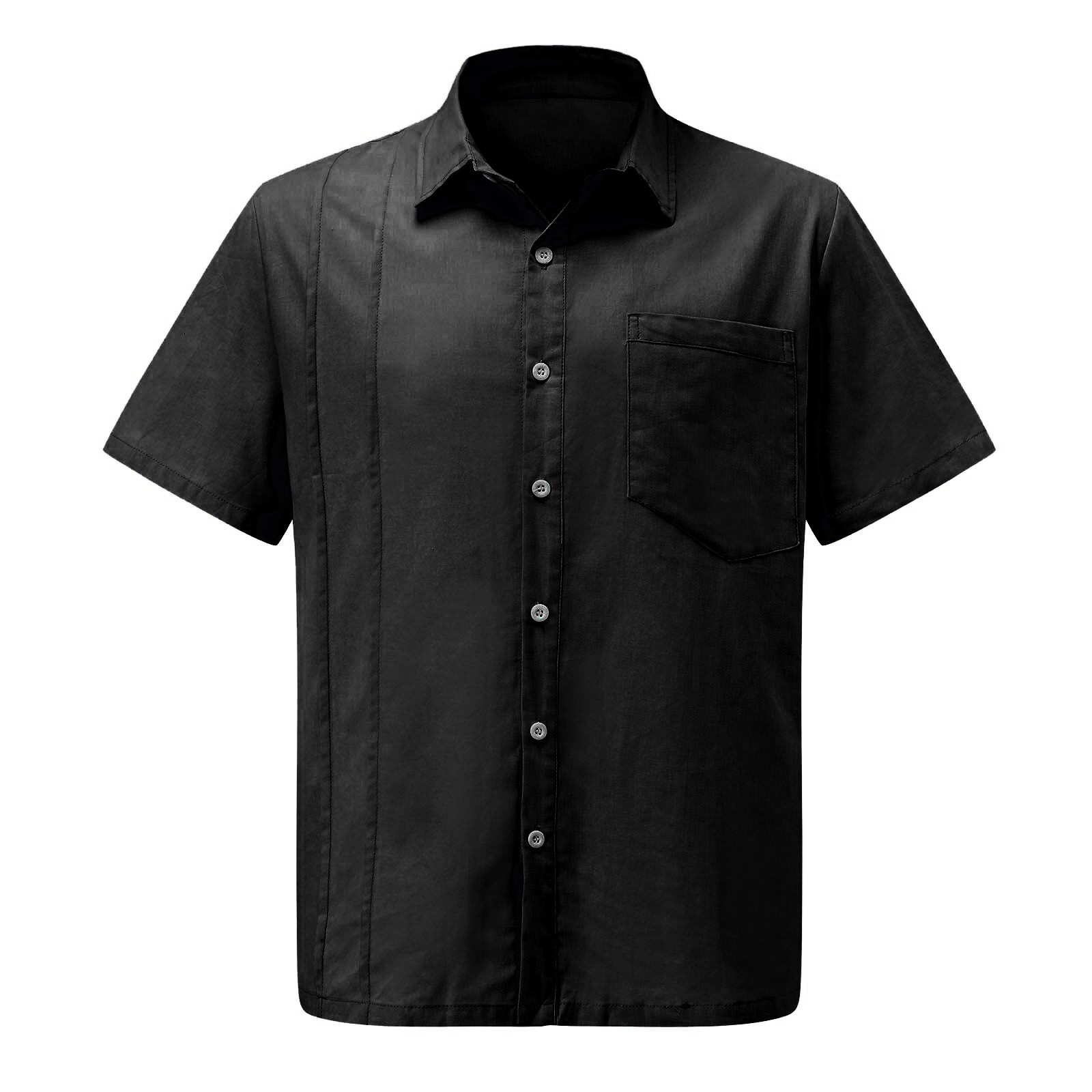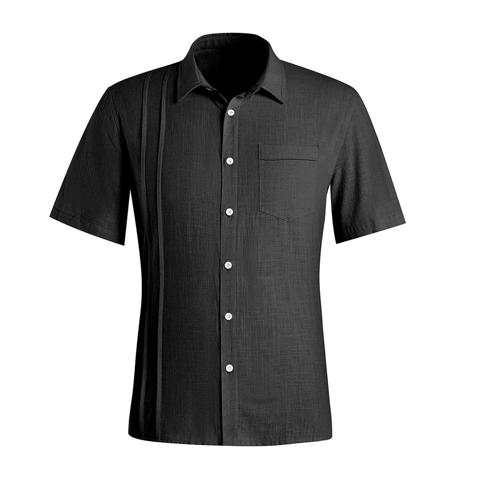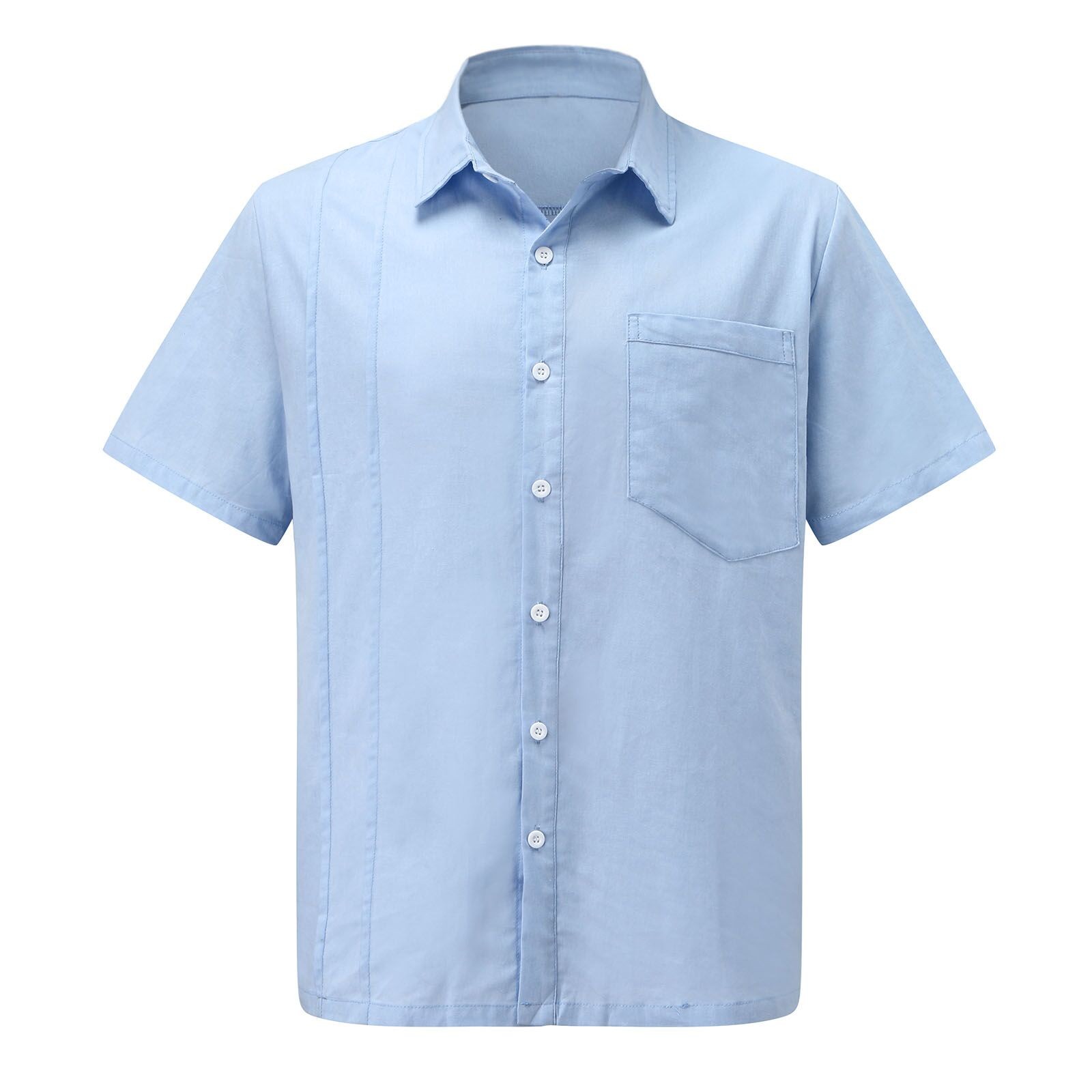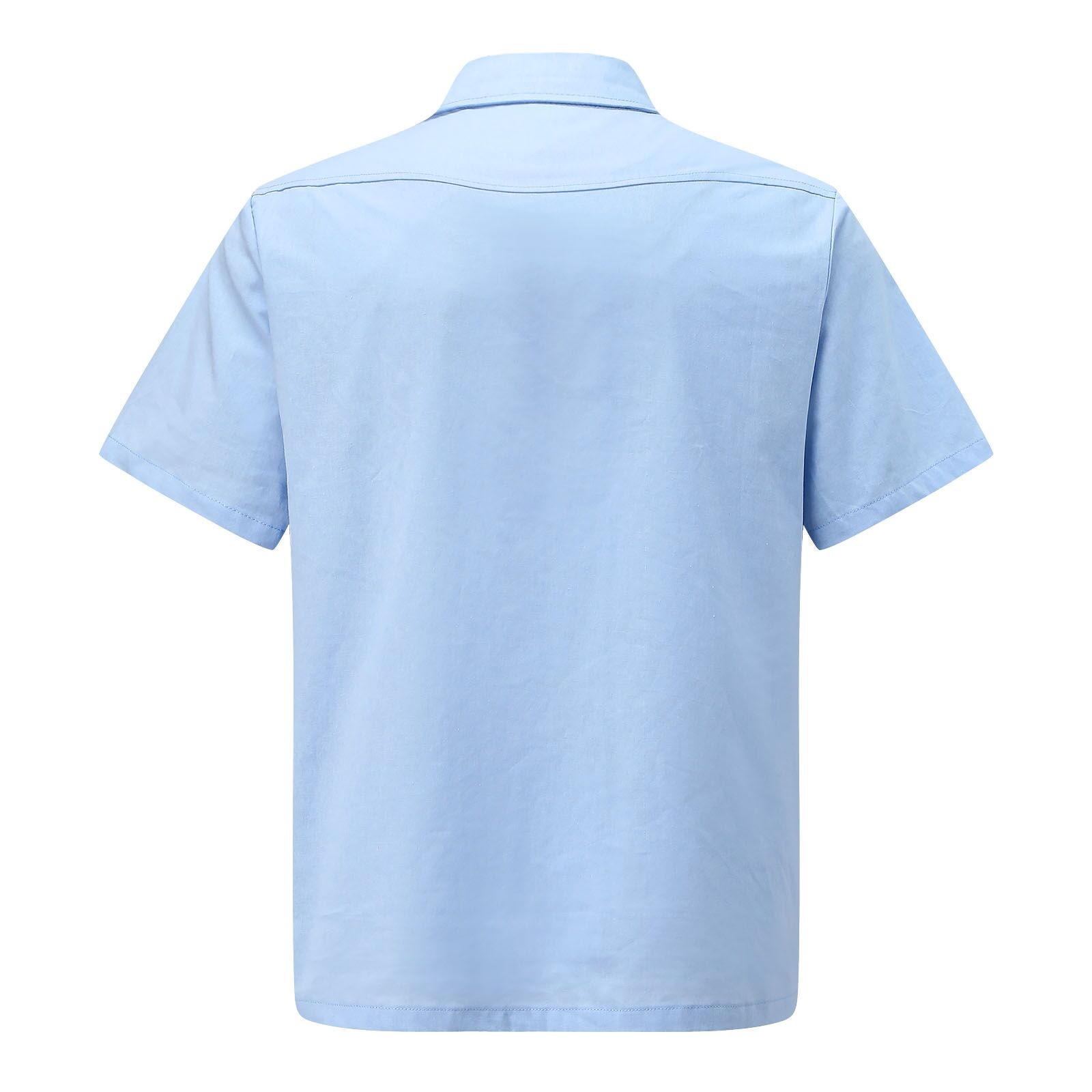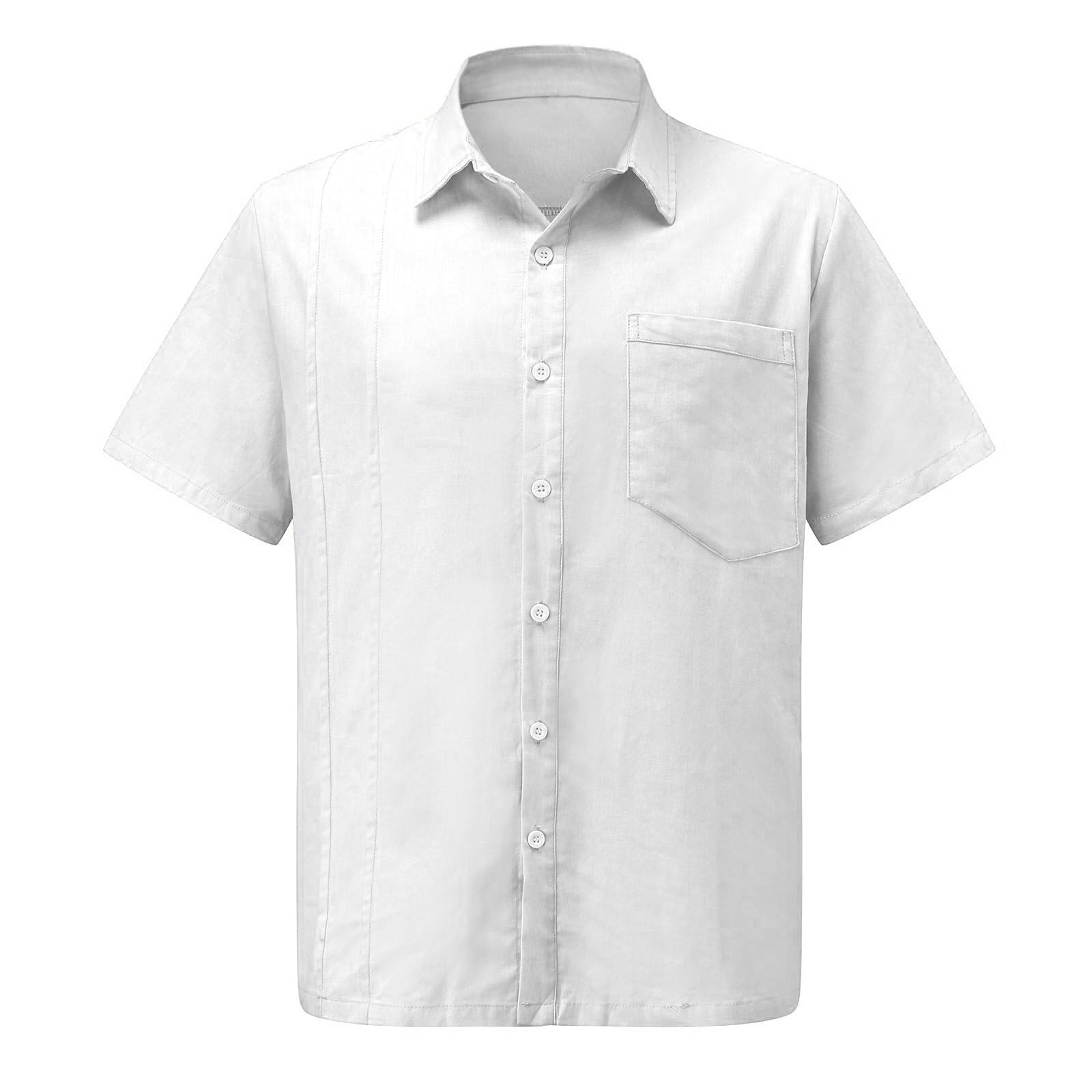 Мужская летняя рубашка из хлопка и льна с короткими рукавами и нагрудным карманом