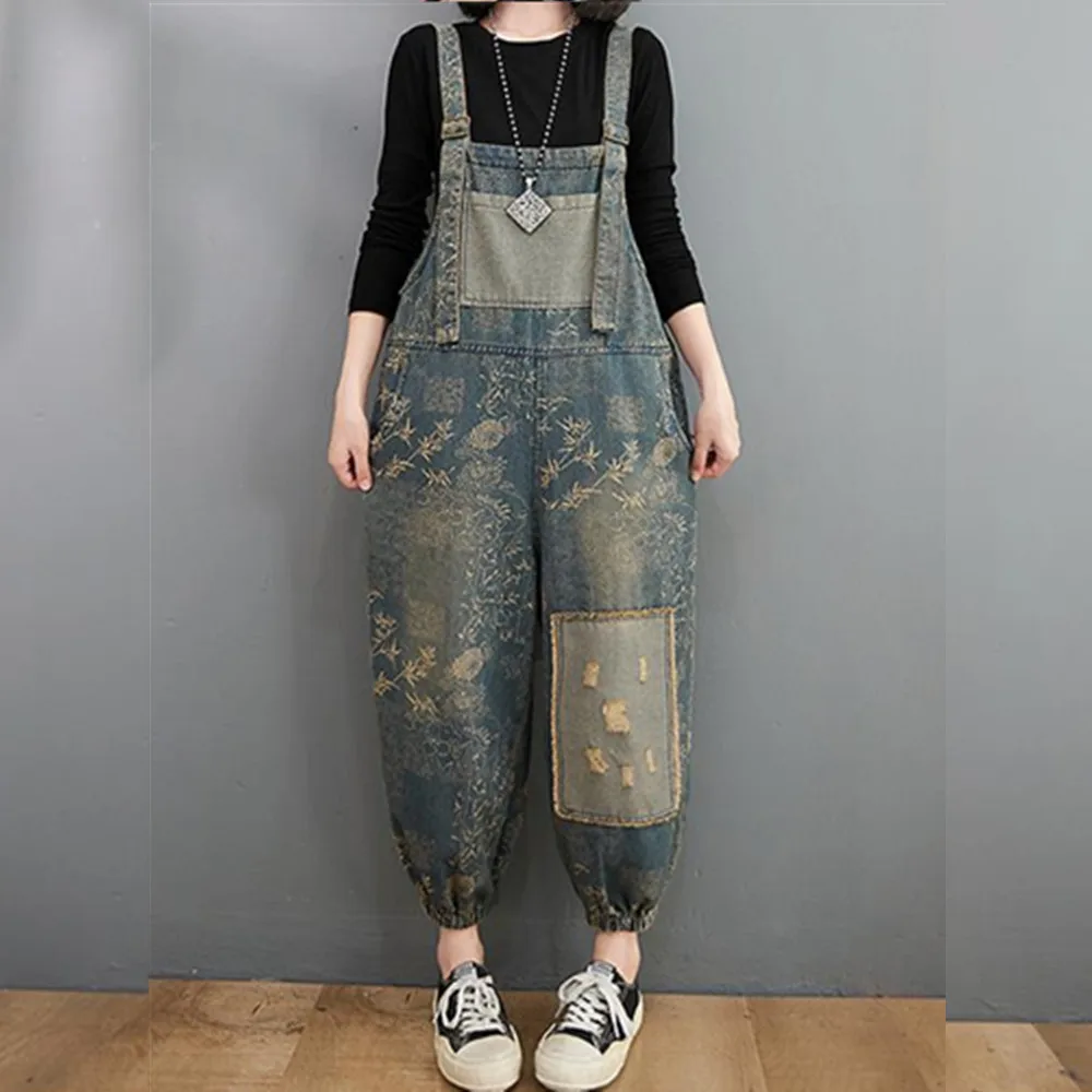 Название: 2021 потертый джинсовый комбинезон с широкими штанинами в стиле ретро; Джинсовый комбинезон с пряжками и карманами