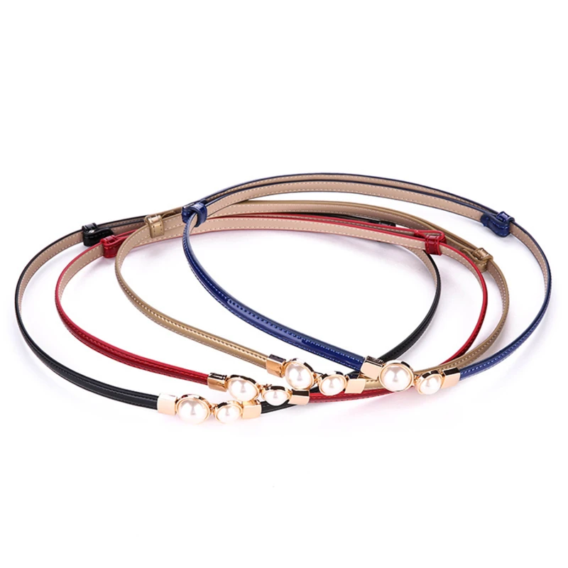 Женский ремень с двойным жемчугом, женский черный, красный, белый, искусственная кожа, платье, юбка, эластичный тонкий пояс, Женский дизайнерский пояс