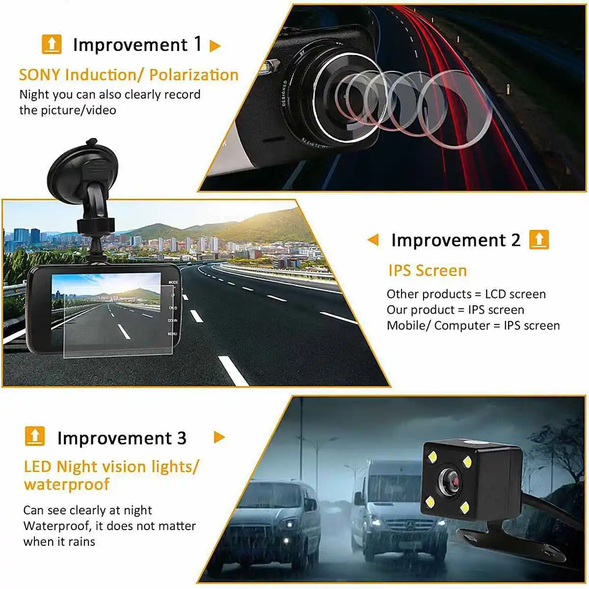 -Видео высокой четкости с низким освещением, двойная камера 1080P и 720P фронтальная камера Full HD 1080P(1920*1080) В камера заднего вида является 720P Встроенная в условиях низкой освещенности Высокая перед светильник 140 ° Широкий Ангел объектива сделана из 6 слоев стекла с высоким коэффициентом пропускания A + в нашей одежде сочетаются различные интеллектуальные технологии обработки, экстремальное изображение, двойная камера со всем стеклом