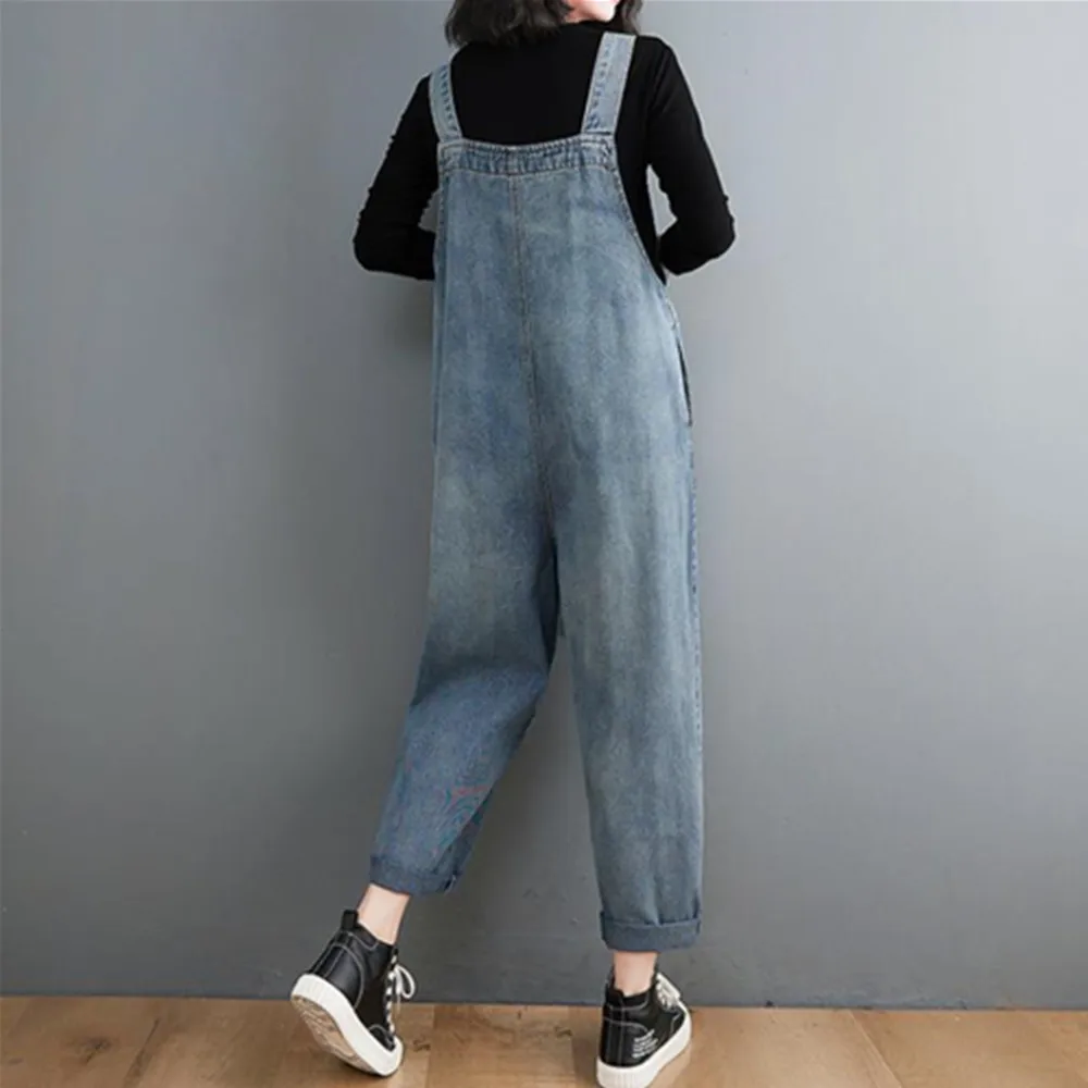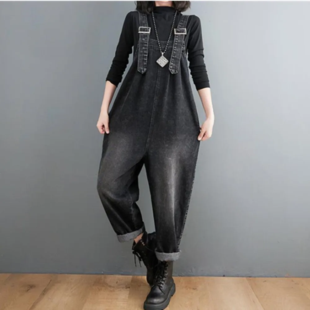 Название: джинсовые комбинезоны женские джинсы шаровары комбинезон широкие брюки женские 2022 Модные свободные однотонные синие черные комбинезоны