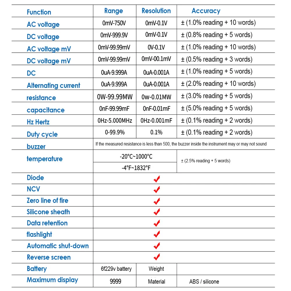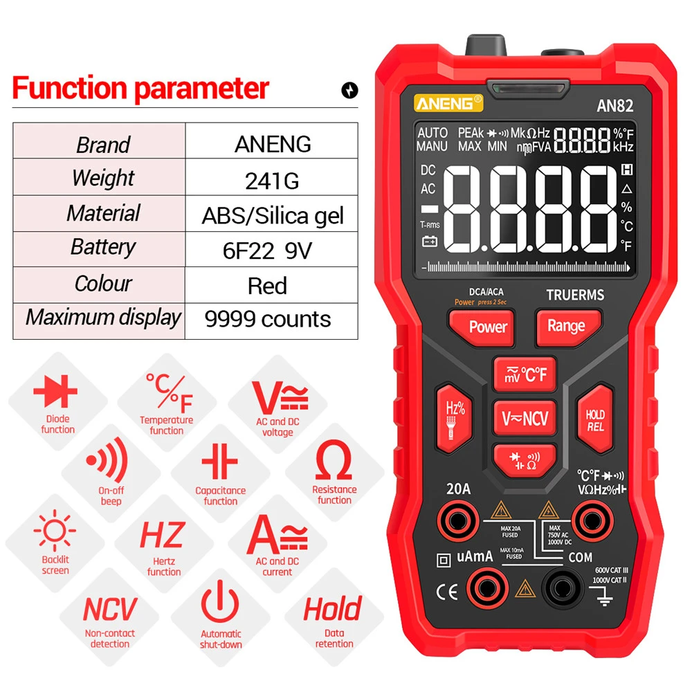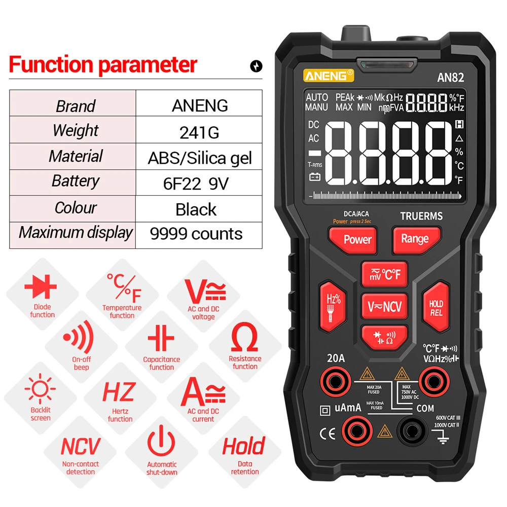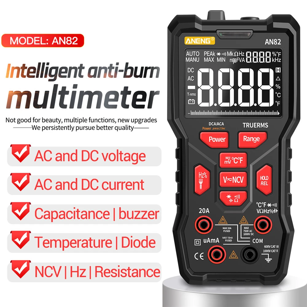 1. Интеллектуальный анти-горящий Цифровой мультиметр 9999 отсчетов, многофункциональное измерение, простой и простой в использовании