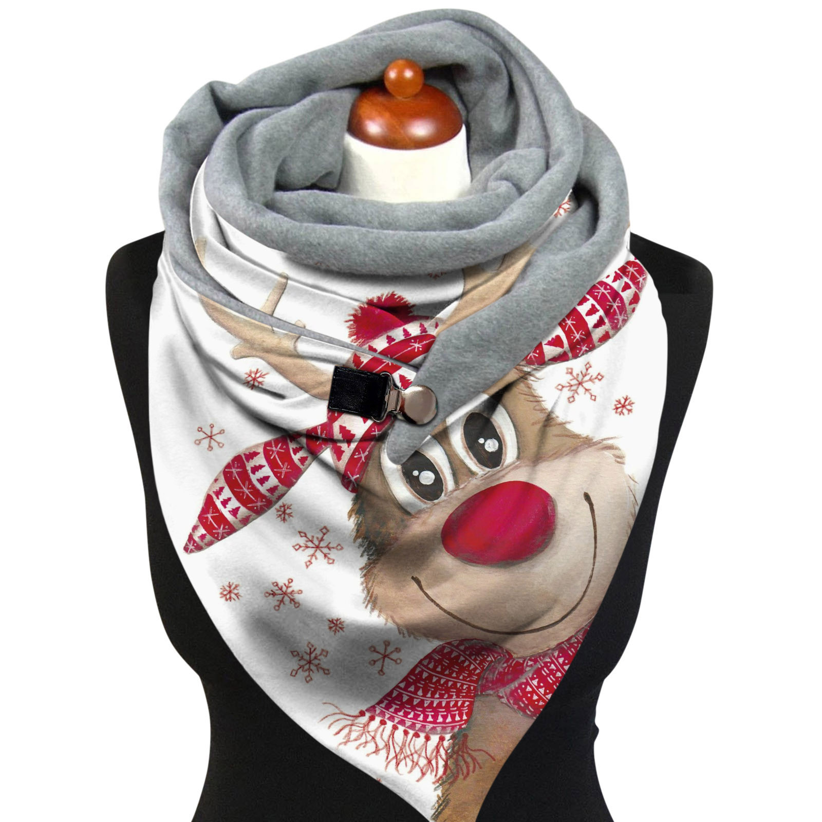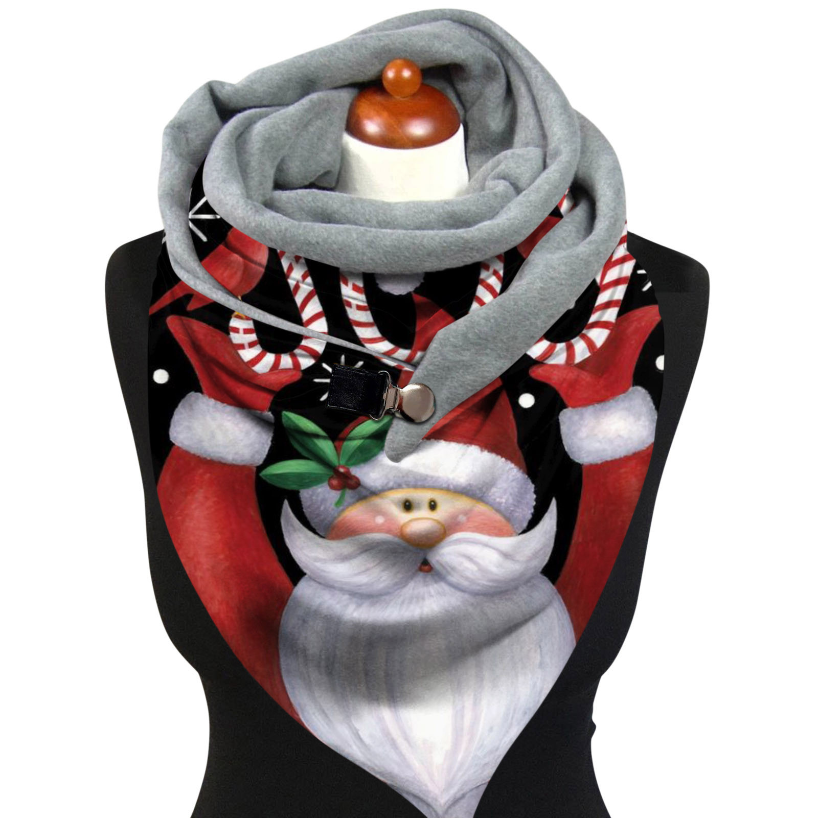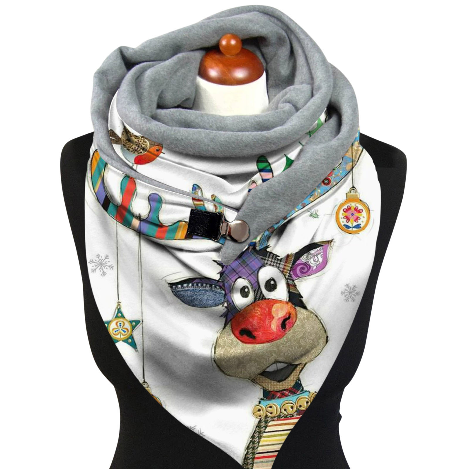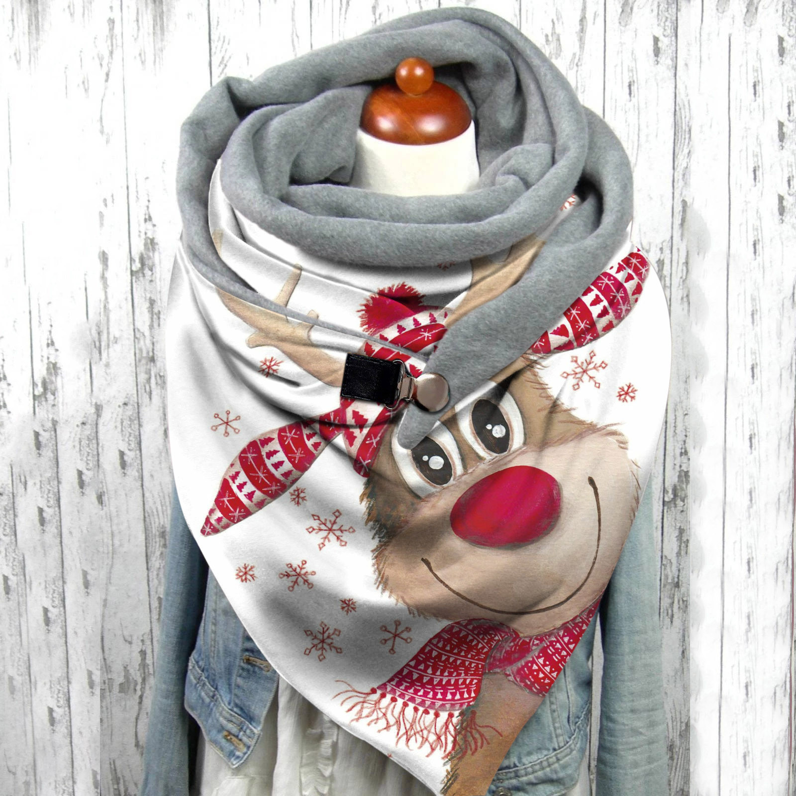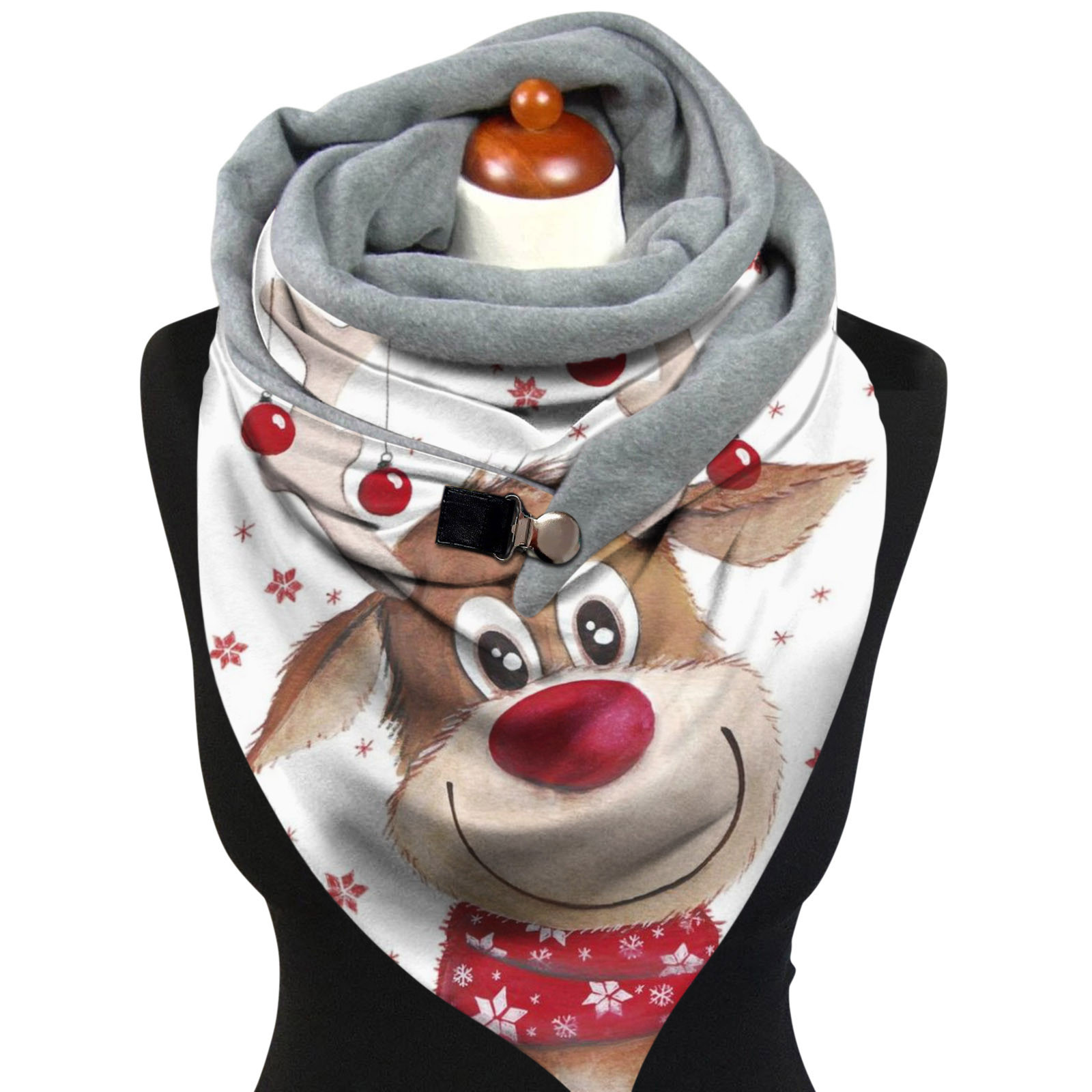 Женская мода Счастливого Рождества печать Кнопка мягкая обертка повседневные теплые шарфы шали