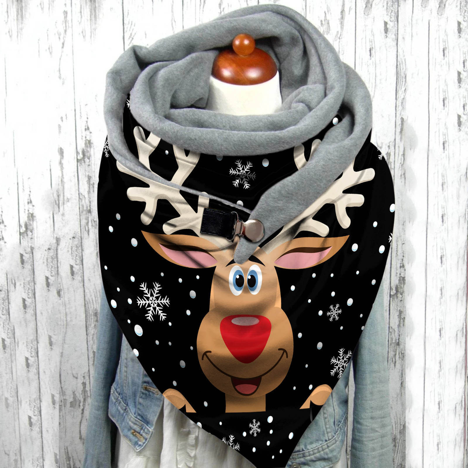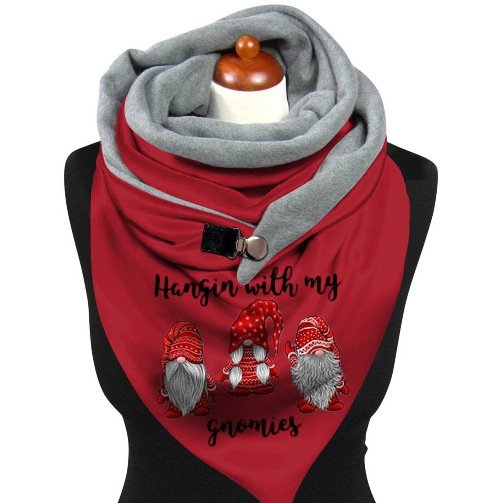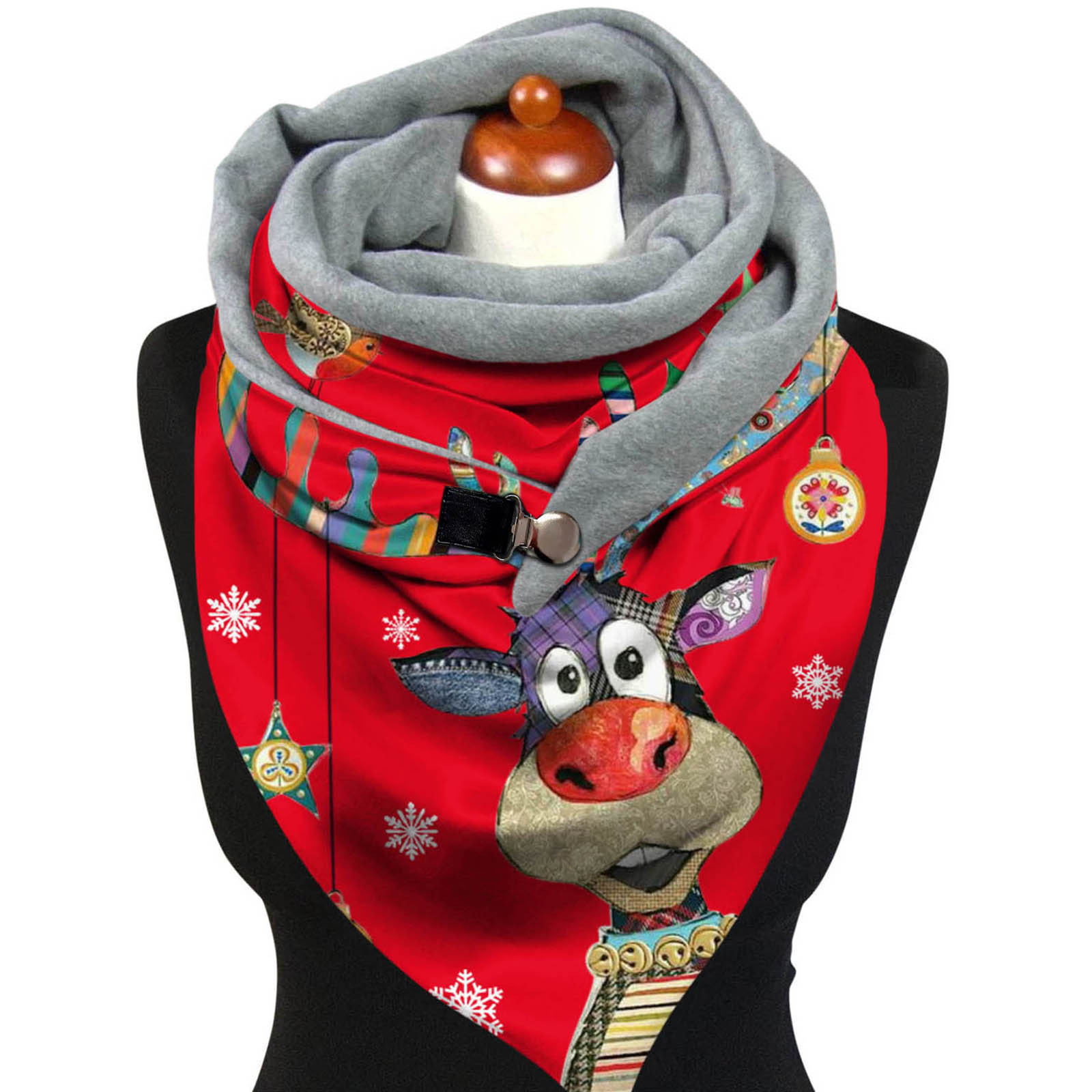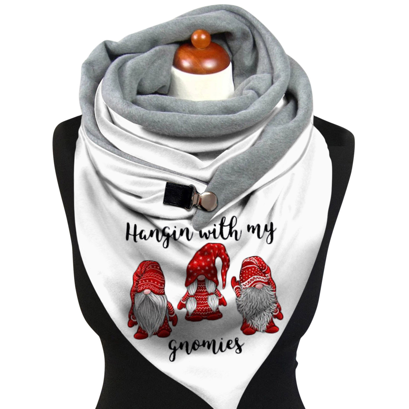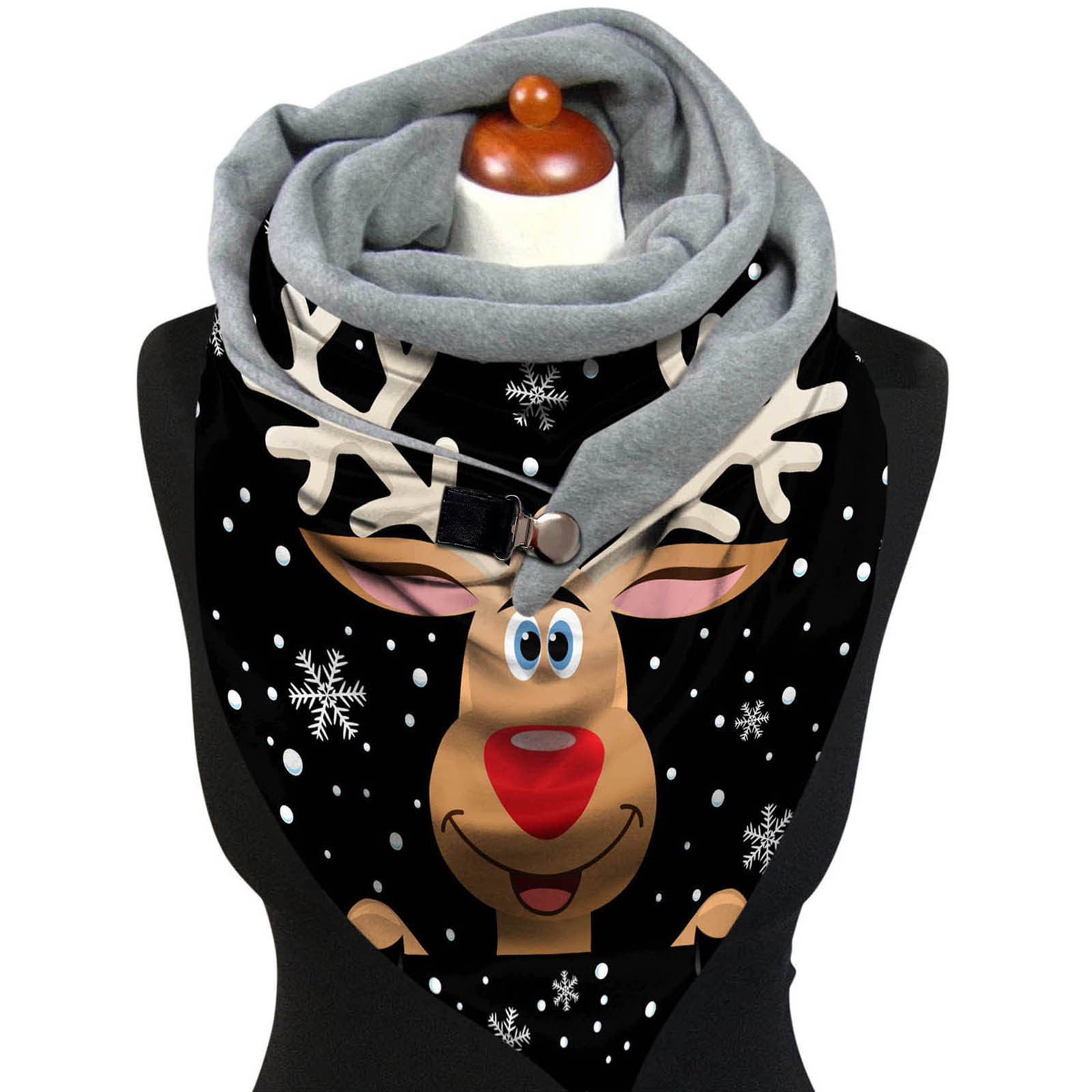 Женская мода Счастливого Рождества печать Кнопка мягкая обертка повседневные теплые шарфы шали