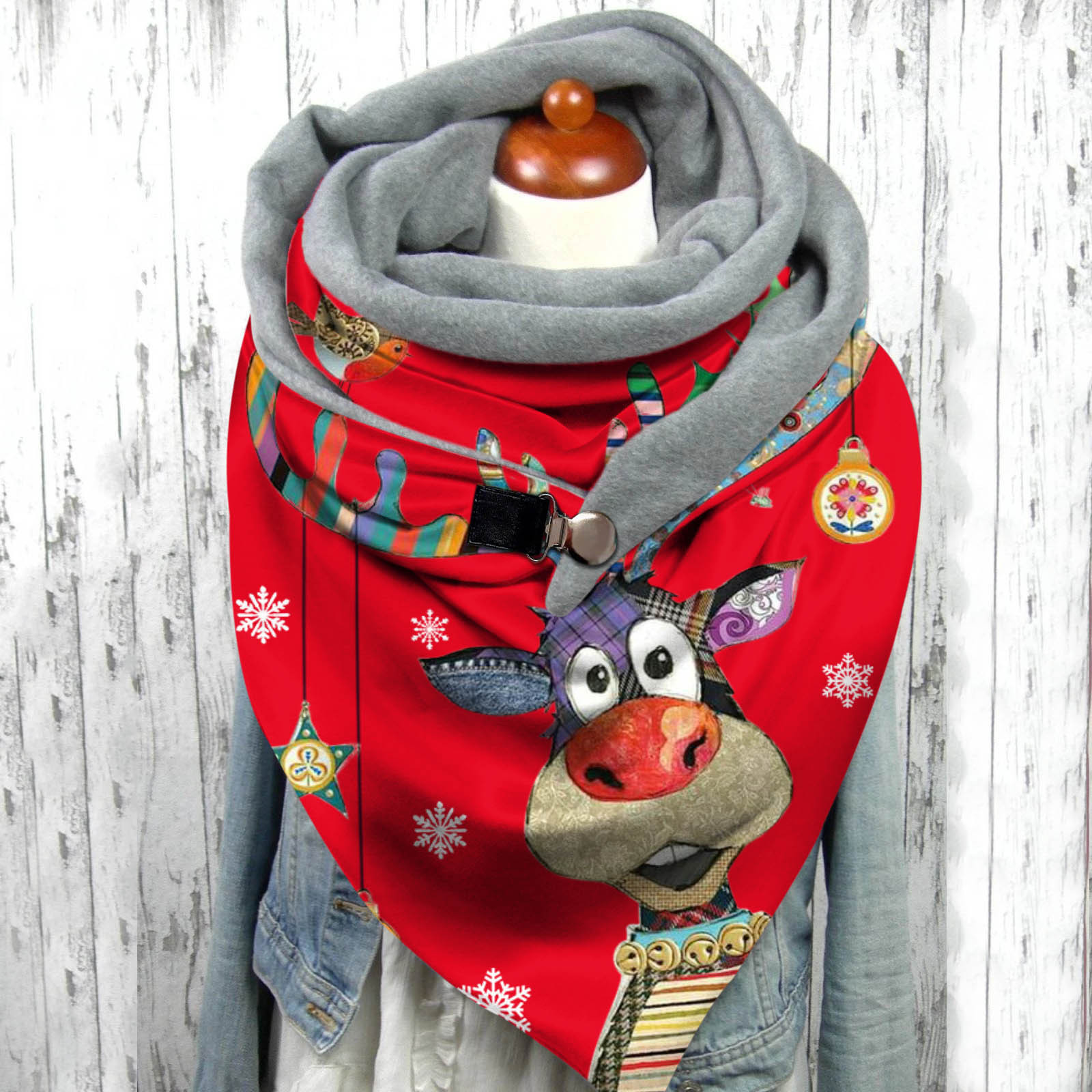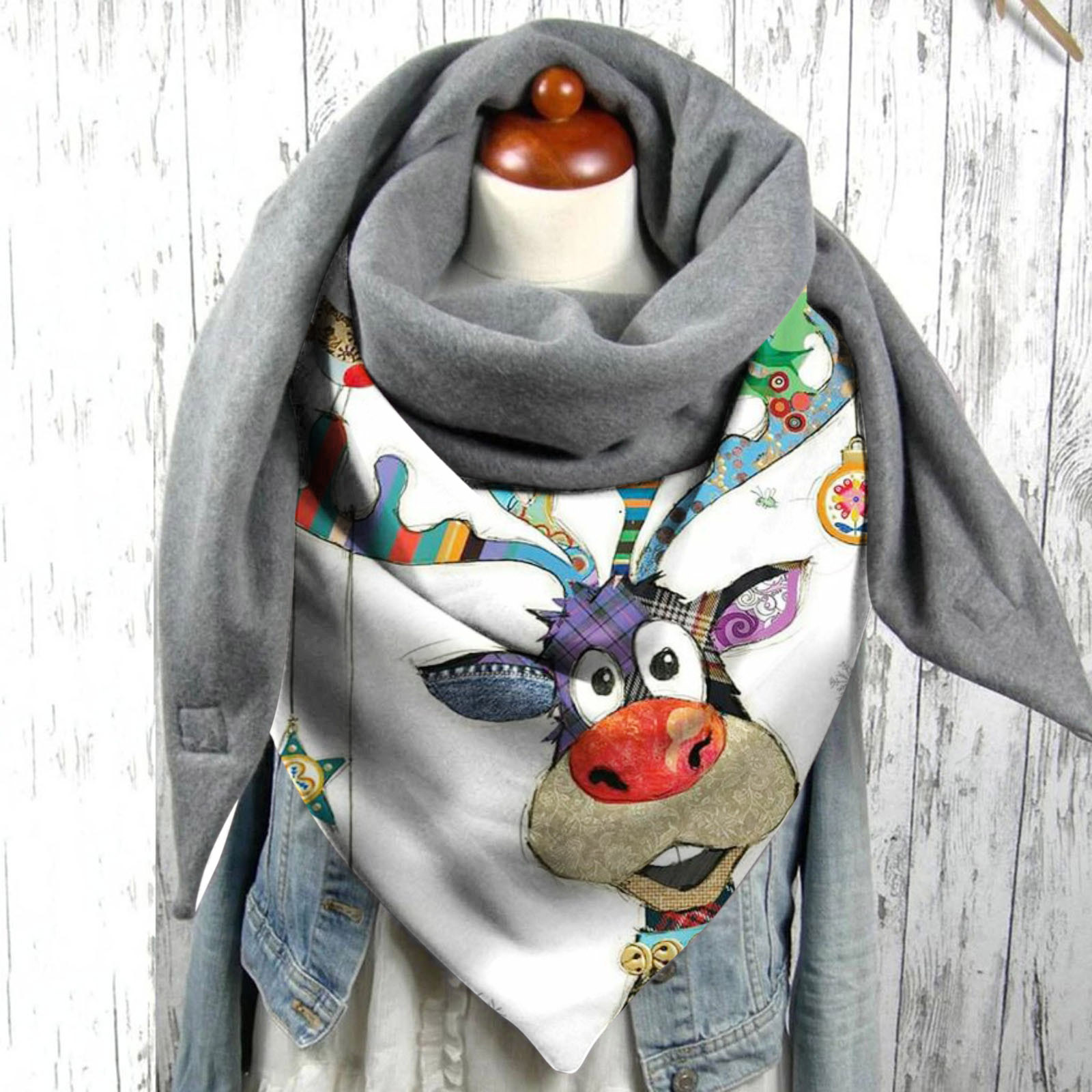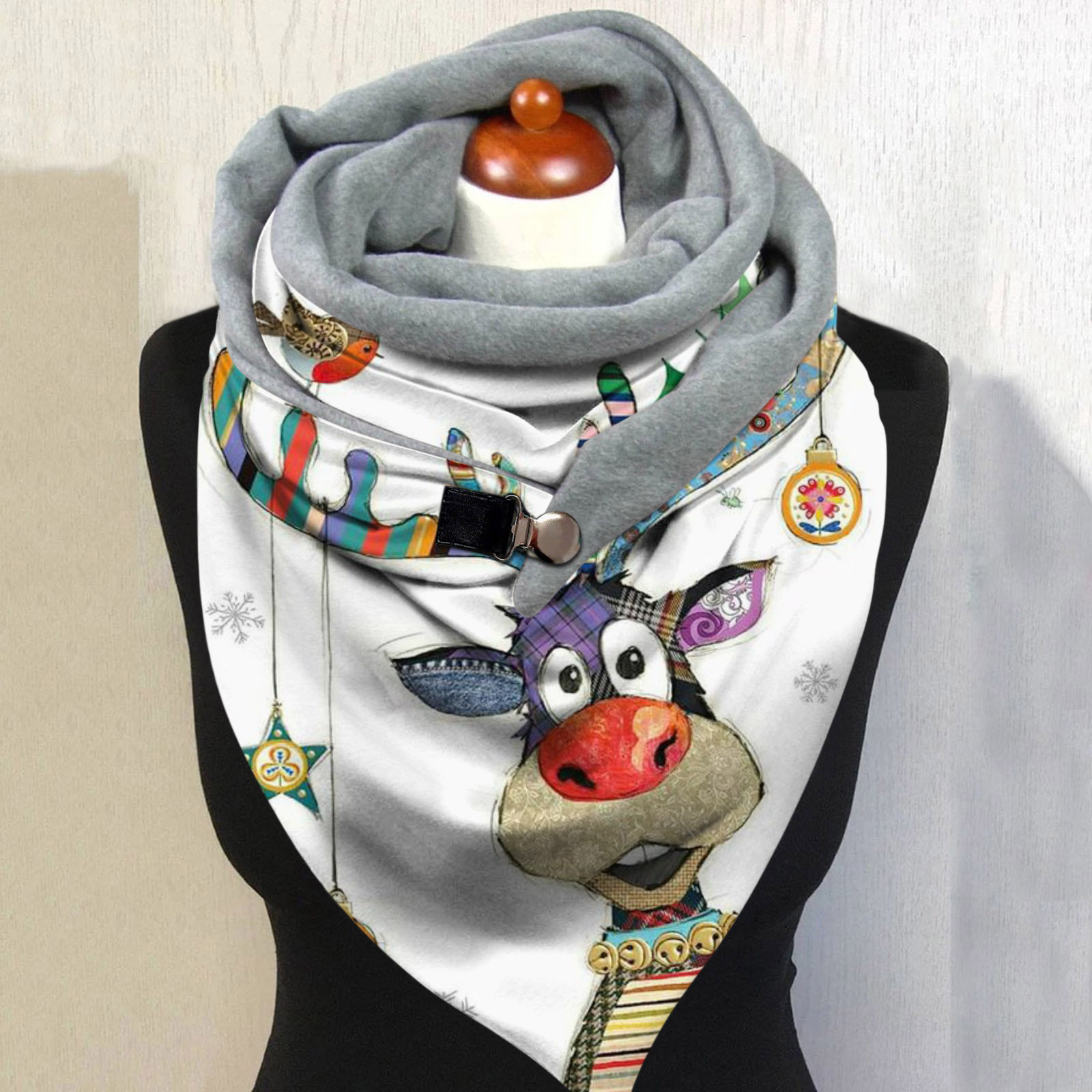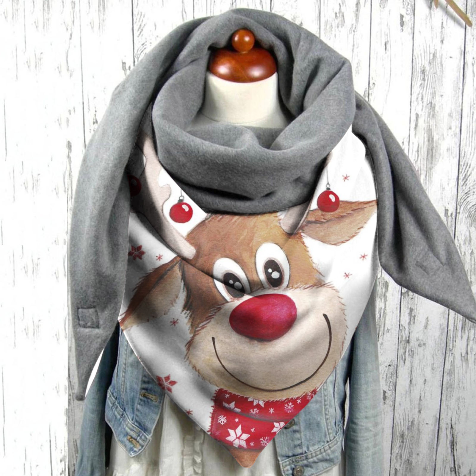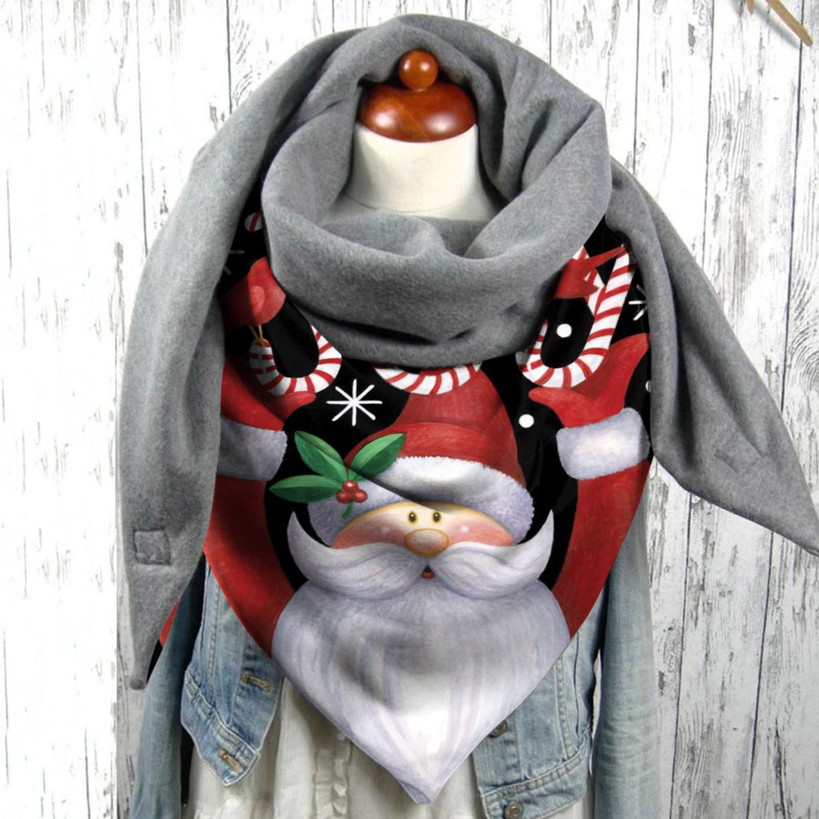 Женская мода Счастливого Рождества печать Кнопка мягкая обертка повседневные теплые шарфы шали