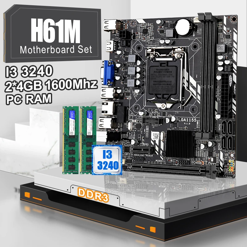 H61M набор материнских плат с i3 3240 Процессор Двухъядерный четыре потока 3,4 ГГц LGA 1155 резьбой раструбного соединения для DDR3 2X4GB 1600 МГц Desktop Memory VGA