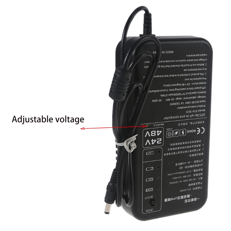 Перед использованием необходимо отрегулировать выходное напряжение с помощью отвертки и вольтметра, выходное напряжение должно быть таким же, как исходное выходное напряжение адаптера питания. Входное напряжение 100-240 В переменного тока, диапазон регулировки выходного напряжения 16-48 В постоянного тока.