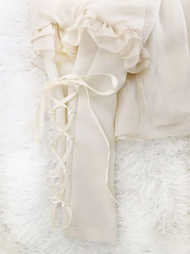 Эта шифоновая рубашка немного короче обычных рубашек. Рекомендуется носить с платьями без рукавов и юбками.