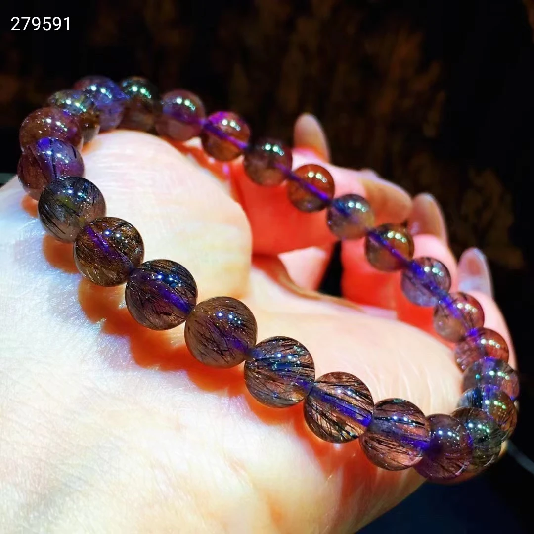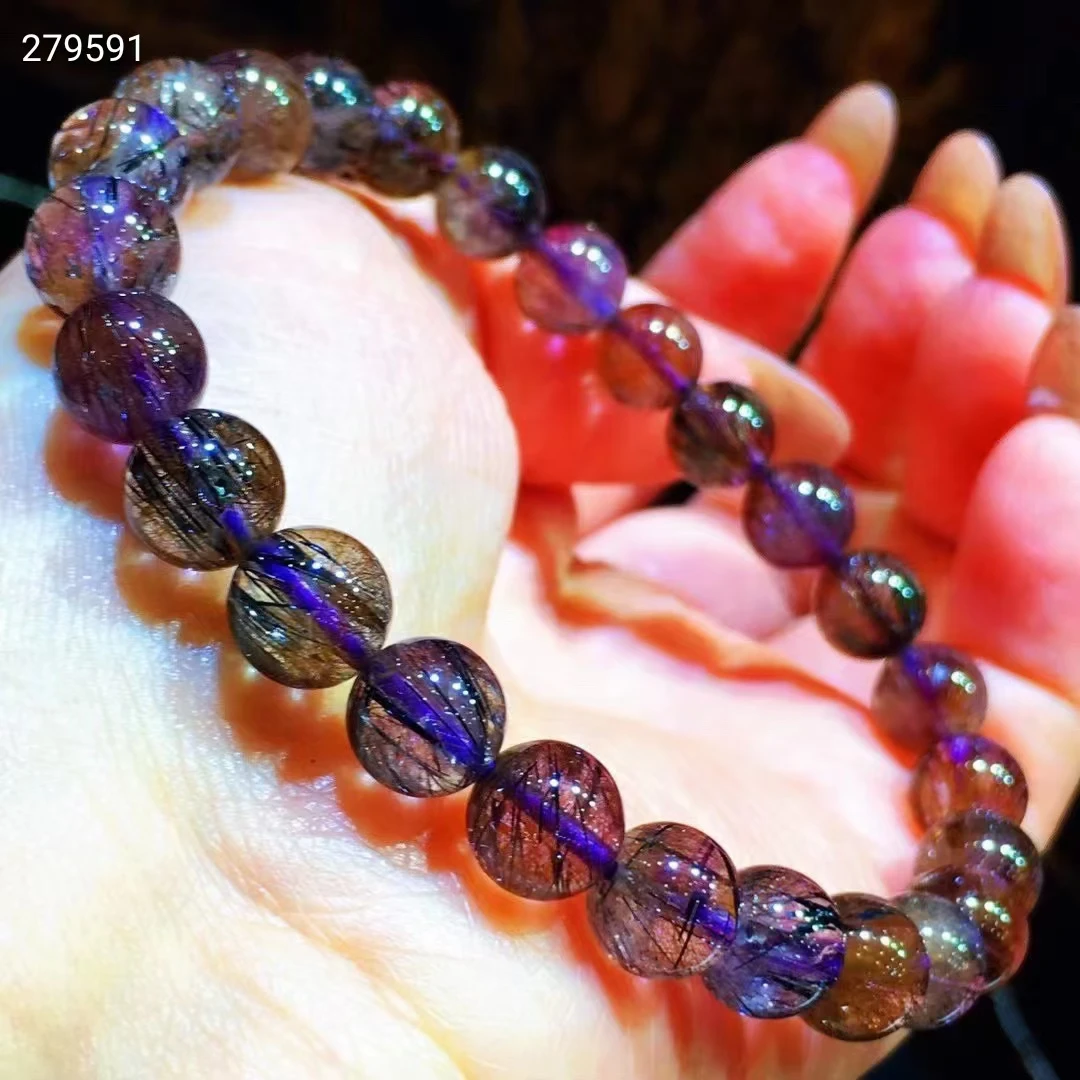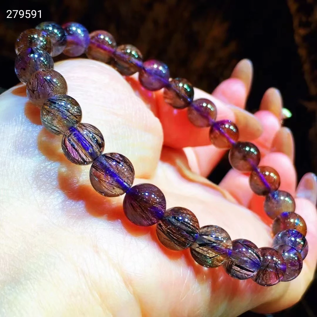 9 мм натуральный фиолетовый рутилированный кварц супер семь Мелодия камень круглый шарик стрейч кристалл браслетUSD 51,20/шт.