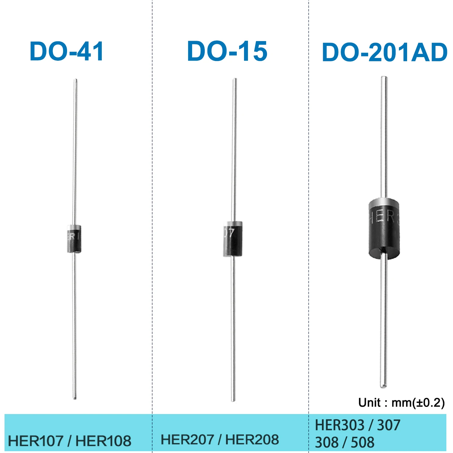HER107 HER108 HER207 HER208 HER303 HER307 HER308 HER508 высокоэффективный выпрямительный диод DO-15 DO-41 DO-201AD осевой 50-70ns