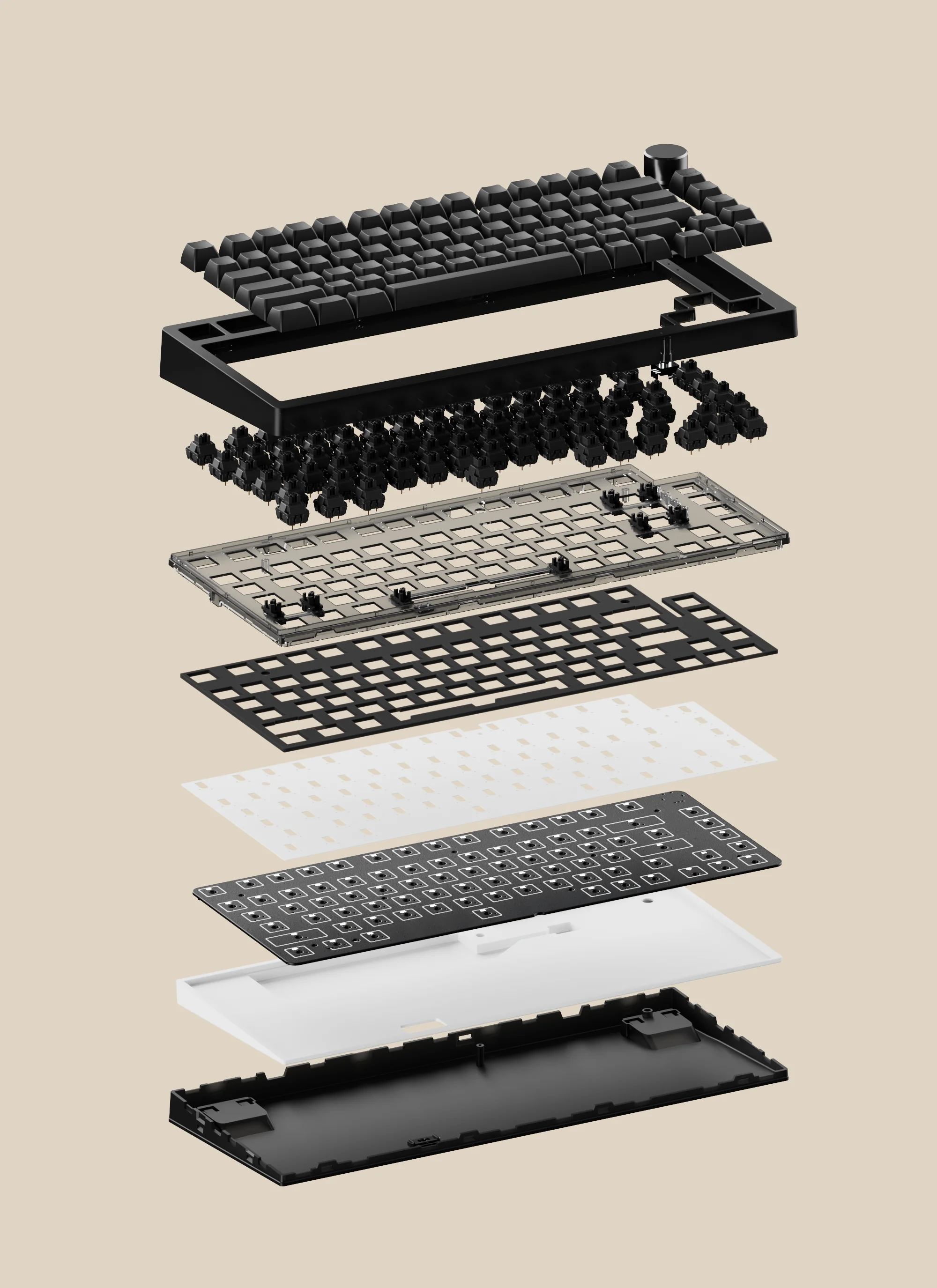 Для достижения максимального плавного набора текста игровая клавиатура PC75B Plus создана с одним хлопковым слоем CR и одним нижним слоем кремния для максимального поглощения полого звука и обеспечения дополнительного стабильного набора текста.