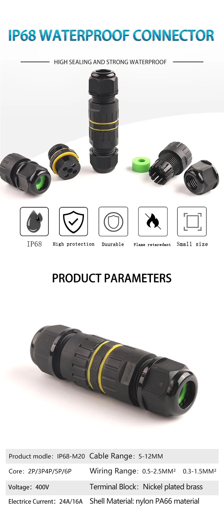 M20 IP68 кабель Водонепроницаемый разъем 2/3/4/5/6 изоляционный контактный зажим адаптер Винт неподвижный провод разъем для электрических светильник распределительная коробка