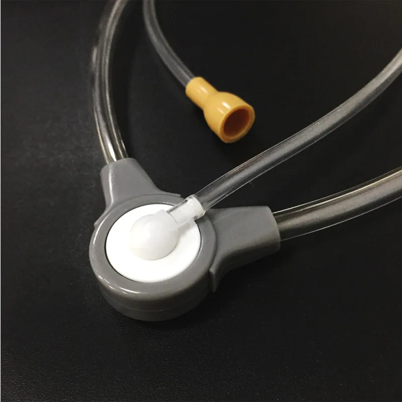 Один с акустическим демпфером внутри, чтобы защитить наши уши при использовании этого стетоскопа для тестирования слуховых аппаратов