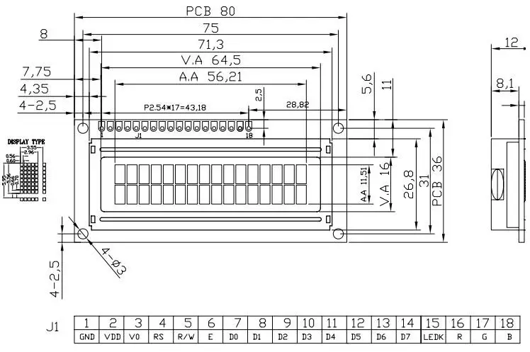Контроллер: SPLC780C/HS44780/KS0066 или эквивалент