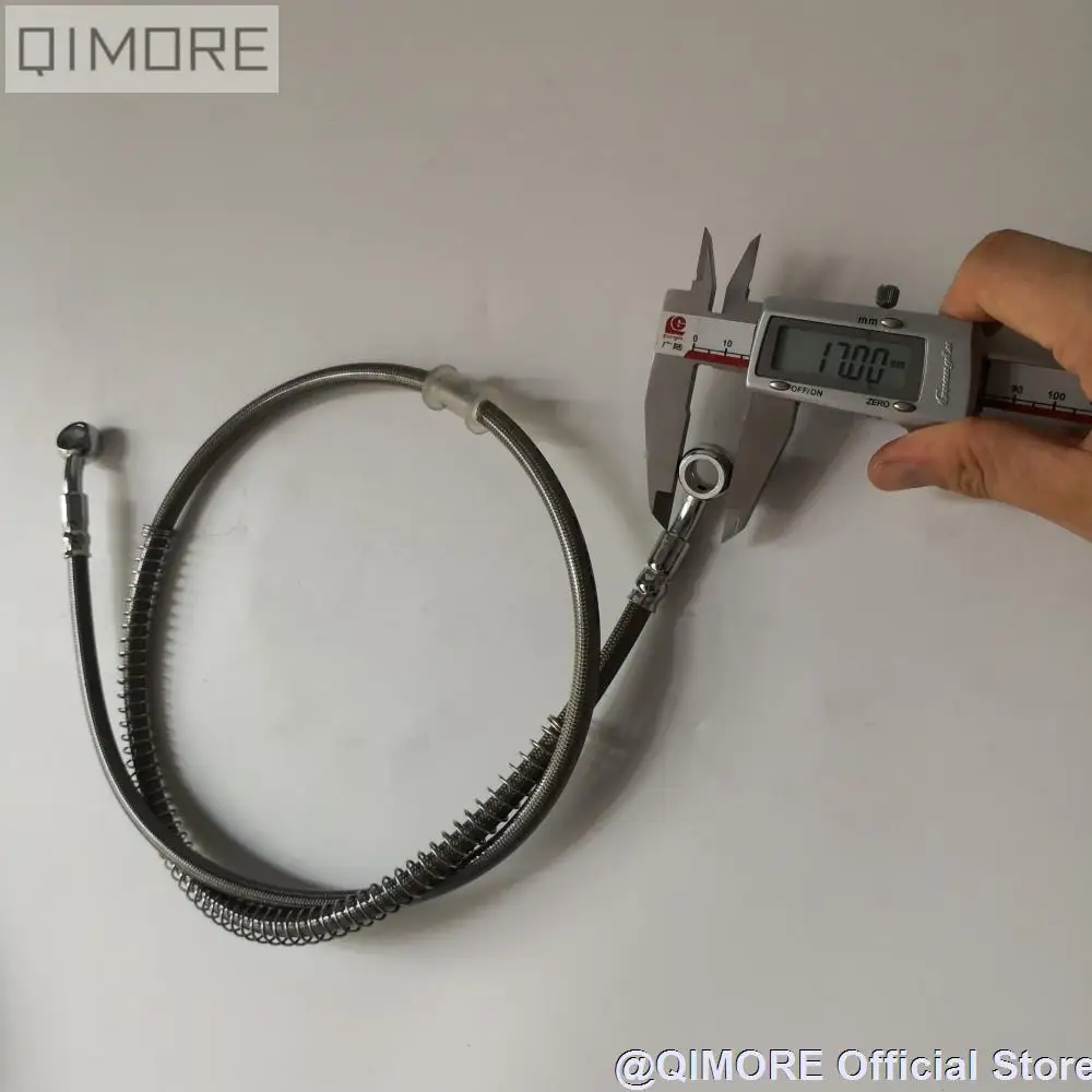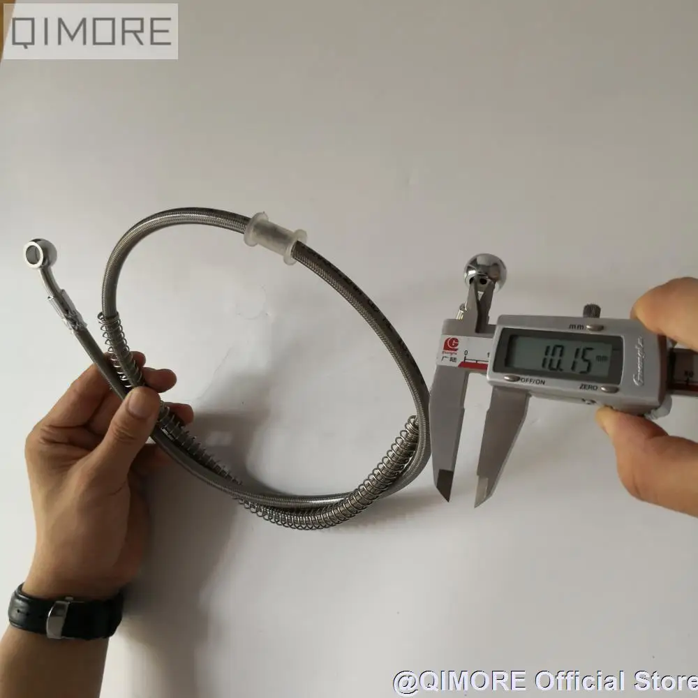 Общая длина: прибл. 101 см (39,76 дюйма) Расстояние от центра отверстия до центра отверстия: прибл. 99 см (39 дюймов) Диаметр отверстия соединителя: 10,15 мм (0,4 дюйма) Толщина тормозного шланга: 7,5 мм (0,3 дюйма)