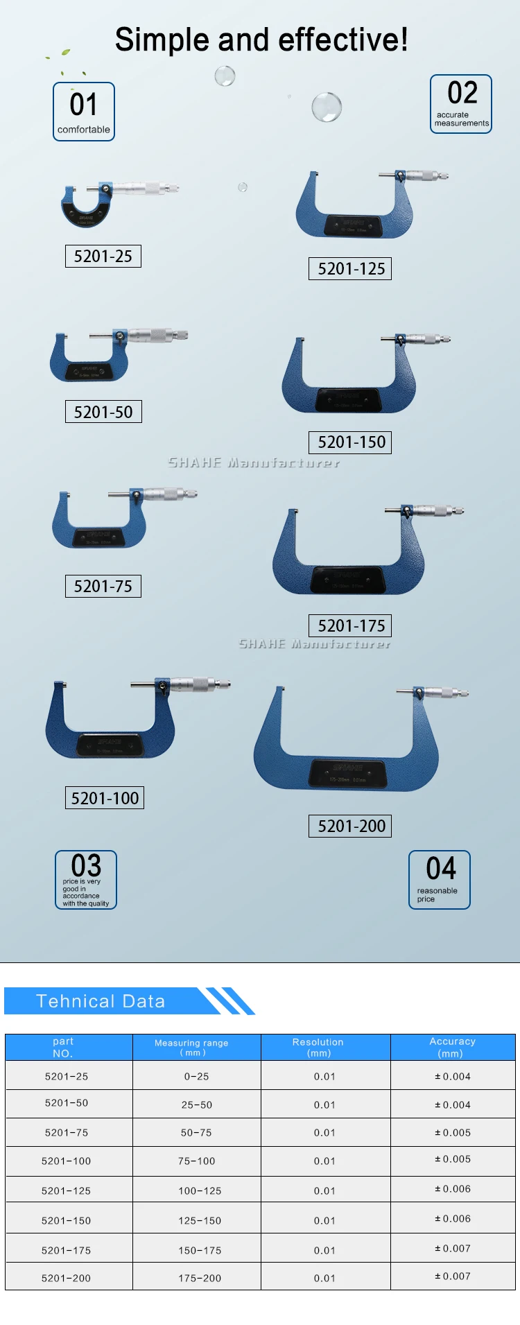 Диапазон измерения: 75-100 мм Разрешение: 0,01 мм Точность: ± 0,005 мм