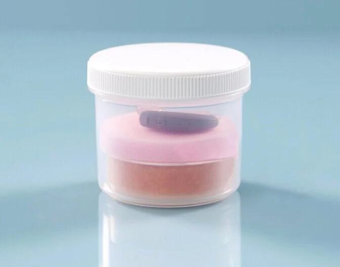 Soundlink слуховой аппарат банка для сушки (сушильная чашка), работает с сушильными капсулами, Портативная пластиковая банка с винтом на крышке размером около 68 мм (2,68 '') высотой и 72 мм (2,83'') в диаметре, достаточно большая для двух традиционных BTEs Материал: PP Банка для осушителя под заказ, отправьте нам ваш логотип, и мы напечатаем их соответственно (MOQ>200 единиц)