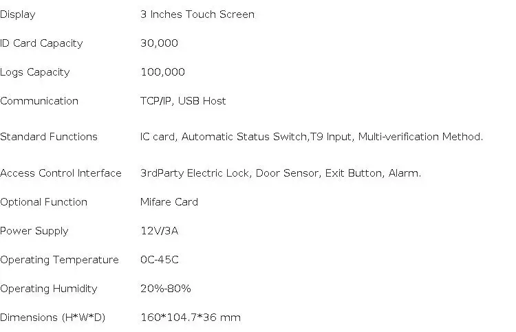 SC700-это терминал контроля доступа 125 кГц с включенным 3 TFT LCD, цветным дисплеем и сенсорным экраном обеспечивает удобное и удобное управление меню.