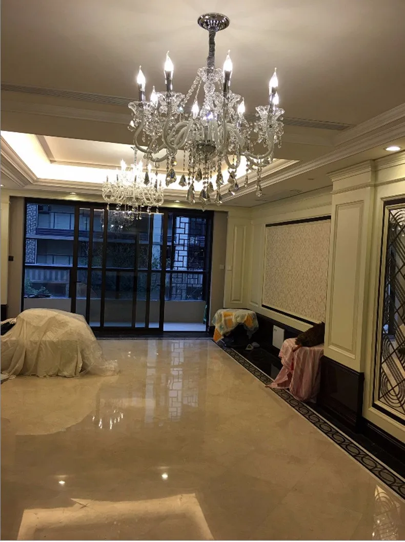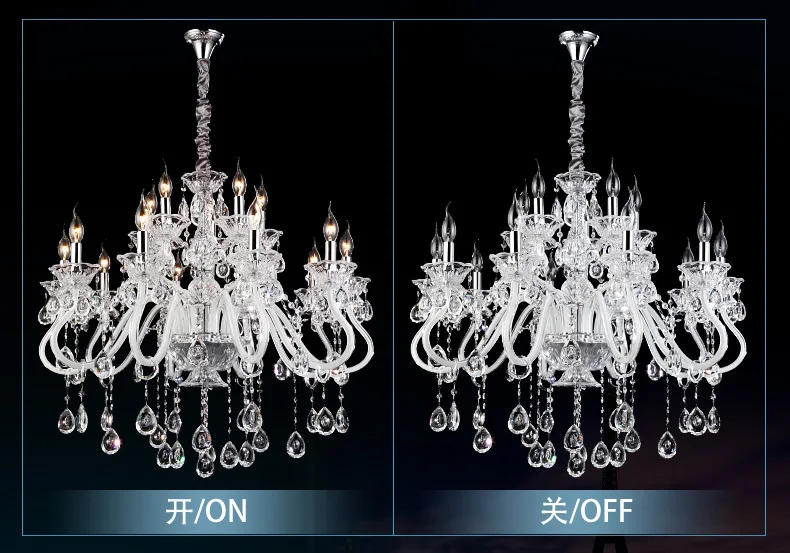 Материал:Роскошные Кристаллы K9 + высококачественные белые прозрачные стеклянные дужки + полированные хромированные свечи и основание