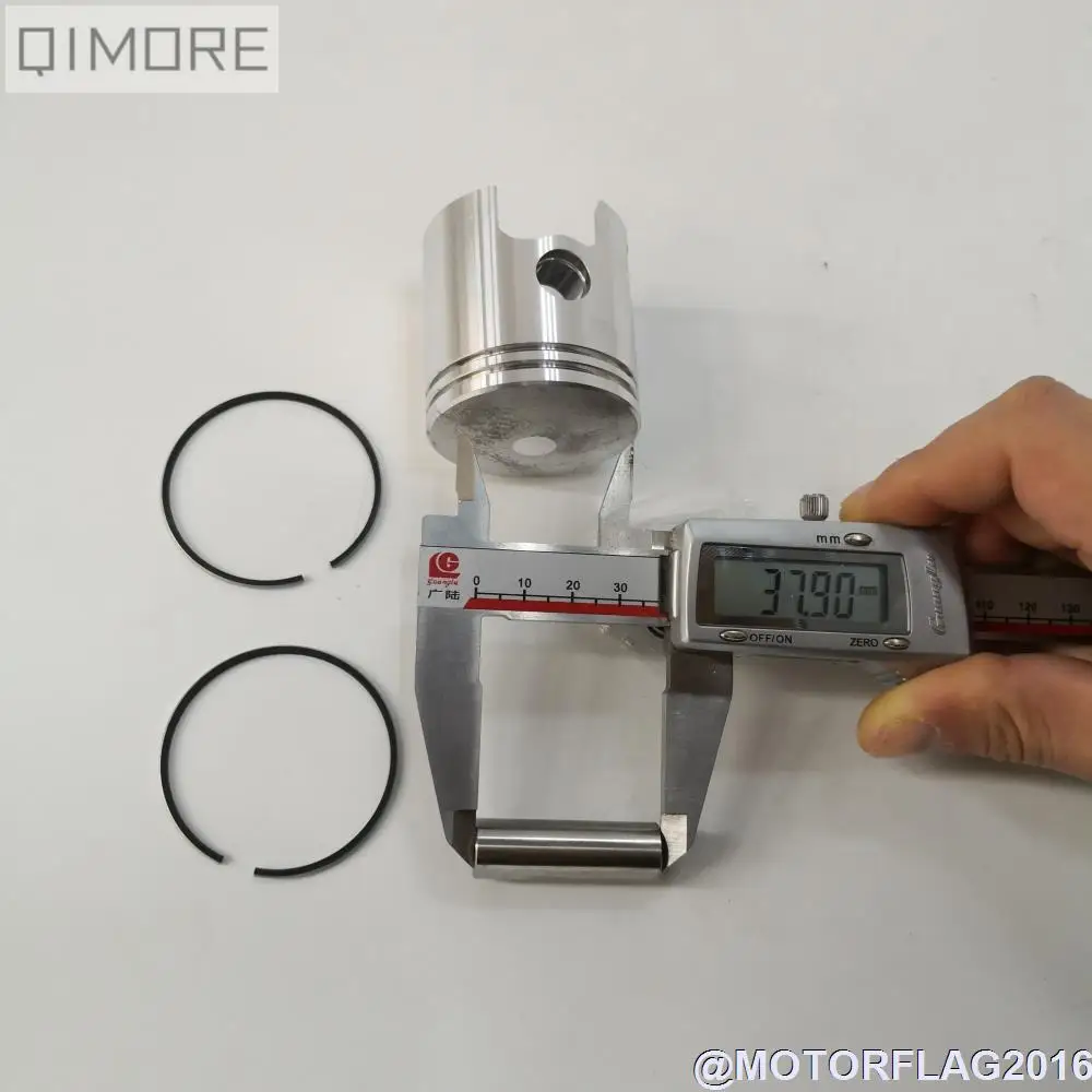 Посылка включает в себя: Цилиндр цилиндра, поршень, поршневой штифт (диаметр 12 мм), кольца, набор поршневых колец, прокладка головки, базовая прокладка, головка цилиндра. Место происхождения: Тайвань Смещение вашего велосипеда может достигать около 70cc после установки. Спецификация: 1. Железный Цилиндр: Внутренний диаметр цилиндра: 47 мм Внешний диаметр юбки: прибл. 51 мм Высота от лица до лица: прибл. 64 мм Общая высота: прибл. 87 мм Расстояние между шпильками: 50 мм 2. Комплект поршней Диаметр поршня (нижняя сторона): 47 мм Диаметр поршня (верхняя сторона): 46,75 мм Общая высота поршня: прибл. 50,7 мм Высота сжатия поршня: прибл. 26 мм Диаметр поршневого штифта: 12 мм Длина поршневого штифта: 37,9 мм Толщина поршневого кольца: 1,45 мм Подкладочное кольцо устанавливается вместе со вторым кольцом (паз, который закрыт для запястья). Это не обязательно устанавливать это кольцо подкладки. Не ездите быстрее, чем 50 км в час во время работы (обычно 500 км-800 км), чтобы избежать забивания цилиндра. Применение: VENTO ZIP, QJ KEEWAY 50cc двухтактные скутеры, такие как Hurricane 50, F-act 50, Matrix 50, RY8 50, Venus 50, произведенные после 2006 года. Внимание: если ваш велосипед имеет поршневой штифт 10 мм (Диаметр поршневого отверстия или Диаметр поршневого штифта), наш комплект большого отверстия не подходит. Пожалуйста, внимательно сравните свой продукт с нашими размерами перед покупкой, чтобы убедиться, что комплект подходит для вашего скутера.