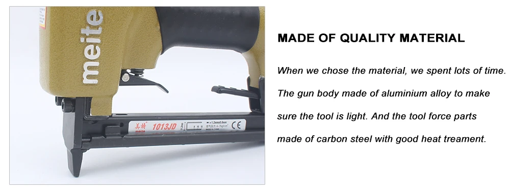 Бренд: meiteТип: 1013JDРазмеры: 50*143*207 ммЕмкость: 100 шт/катушкаДавление воздуха: 4-7 кг/см2Соединительная трубка: 6 ммДлина гвоздя: 6 мм-13 ммВес нетто: 0,94 кг