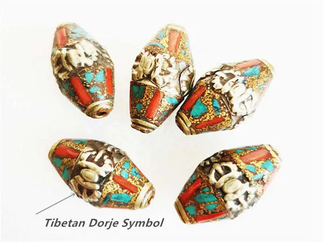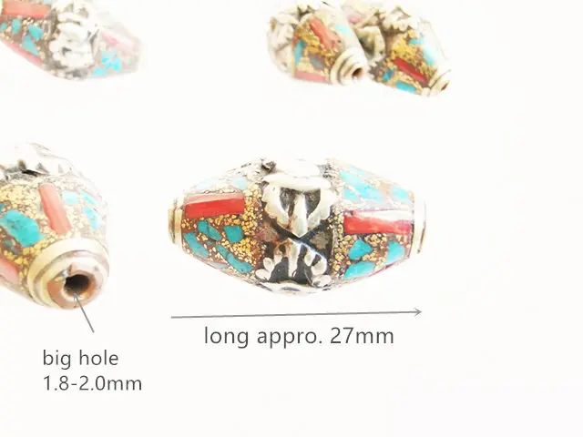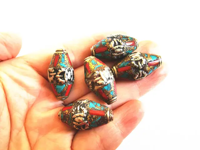 Винтажные бусины Непальские металлические бусины ручной работы инкрустированные цветными каменными челночными бусинами