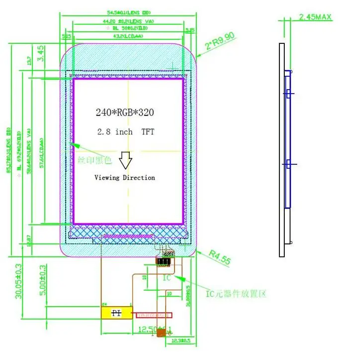 2,8 дюймов TFT ЖК-дисплей Экран