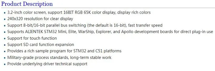 3 интерфейса дисплея 16 бит параллельного интерфейса, поддержка интерфейса шины 6800 и 8080, поддержка интерфейса шины STM32 и FSMC, скорость скребка быстрая