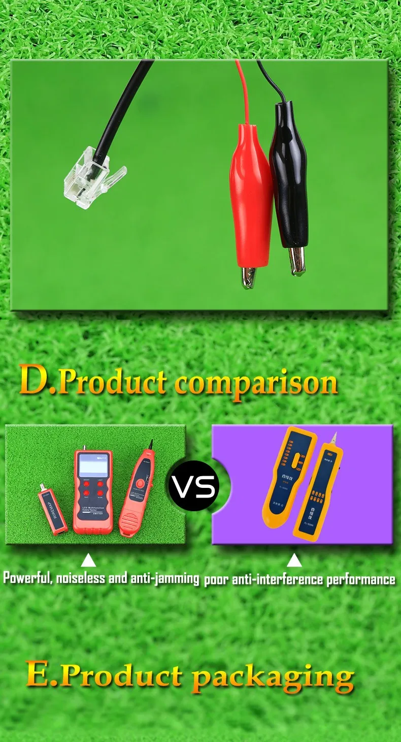 Описание продукта: Особенности: 1. Провод можно охотиться непосредственно в связи с Ethernet-переключателем/маршрутизатором/ПК терминалом различных моделей при запуске 2. Тест 5E, 6E, телефонный провод, коаксиальный кабель, USB кабель, 1394 линия и другие кабели для устранения проблем 3.RJ45/RJ11/BNC/USB/1394 и другие порты включены, и сложный переключатель не требуется 4. ЖК-дисплей, результат дисплея более прямой, более визуальный и четкий 5. Функция звукового подсказки разного статуса цепи 6,9 В батарея для источника питания и функция подсказки низкого напряжения Технические характеристики: Модель: NF-838 Излучатель: 185*80*32 мм Приемник: 218*46*29 мм Идентификатор пульта: 107*30*24 мм Мощность: две ламинированные батареи 9 В (не входят в комплект) Дисплей: большой ЖК-экран Сегментированный дисплей (эффективная визуальная площадь 54*26 мм) Тип кабеля протестирован: STP/UTP двойной витой кабель, коаксиальный кабель, телефонная линия Температура окружающей среды: от-10C до + 60C Расстояние передачи сигнала: более 3 км Испытание на неисправность: открытие, короткое замыкание, обратное положение, перекрещивание и серия обмотки Посылка включает в себя: 1 * Излучатель 1 * приемник 1 * удаленного идентификатора 1 * RJ45 кабель 1 * RJ11 кабель 1 * кабель с крокодиловым зажимом 1 * Разъем для наушников 1 * Инструкция по эксплуатации 1 * сумка