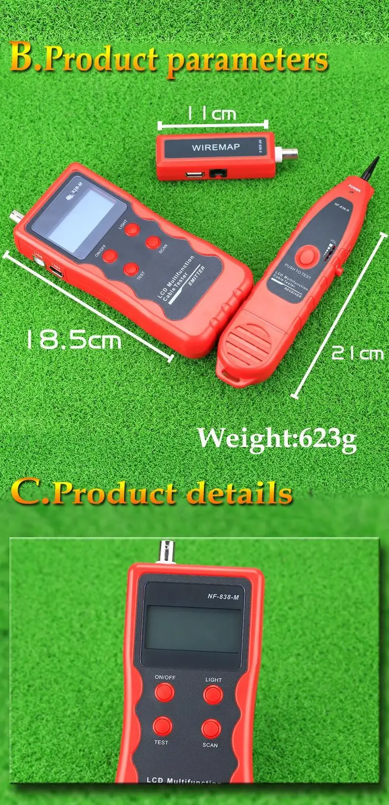 KELUSHI NF-838 сетевой LAN Кабельный тестер трекер телефон LAN BNC кабель Finder USB RJ11 RJ45 провод Tracer