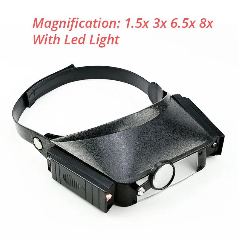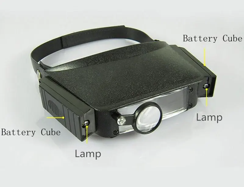 Особенности: 1) Лупа с подсветкой мульти-мощного шлема. 2) 2 светодиода обеспечивают идеальный свет в темном состоянии. 3) лента с зажимом на голову, ее можно регулировать в зависимости от размера головы пользователя.