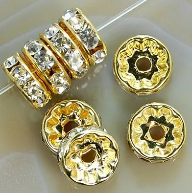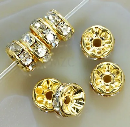 8 мм 10 мм каждый 100 шт Бесплатная доставка + подарок WFGD Белый Кристалл Rhinestone Rondelle Spacer, позолоченные DIY бусины подходят для браслета.