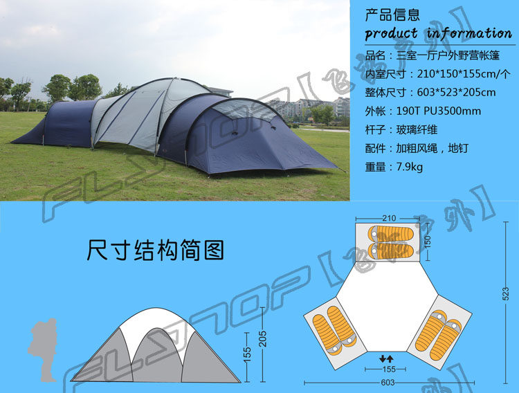 Двойной негабаритный наружный кемпинговый тент Кемпинг 8-10 два дюжины ПВО ультрафиолетовая комната спальня непромокаемыйUS $165,95Долларов США/шт