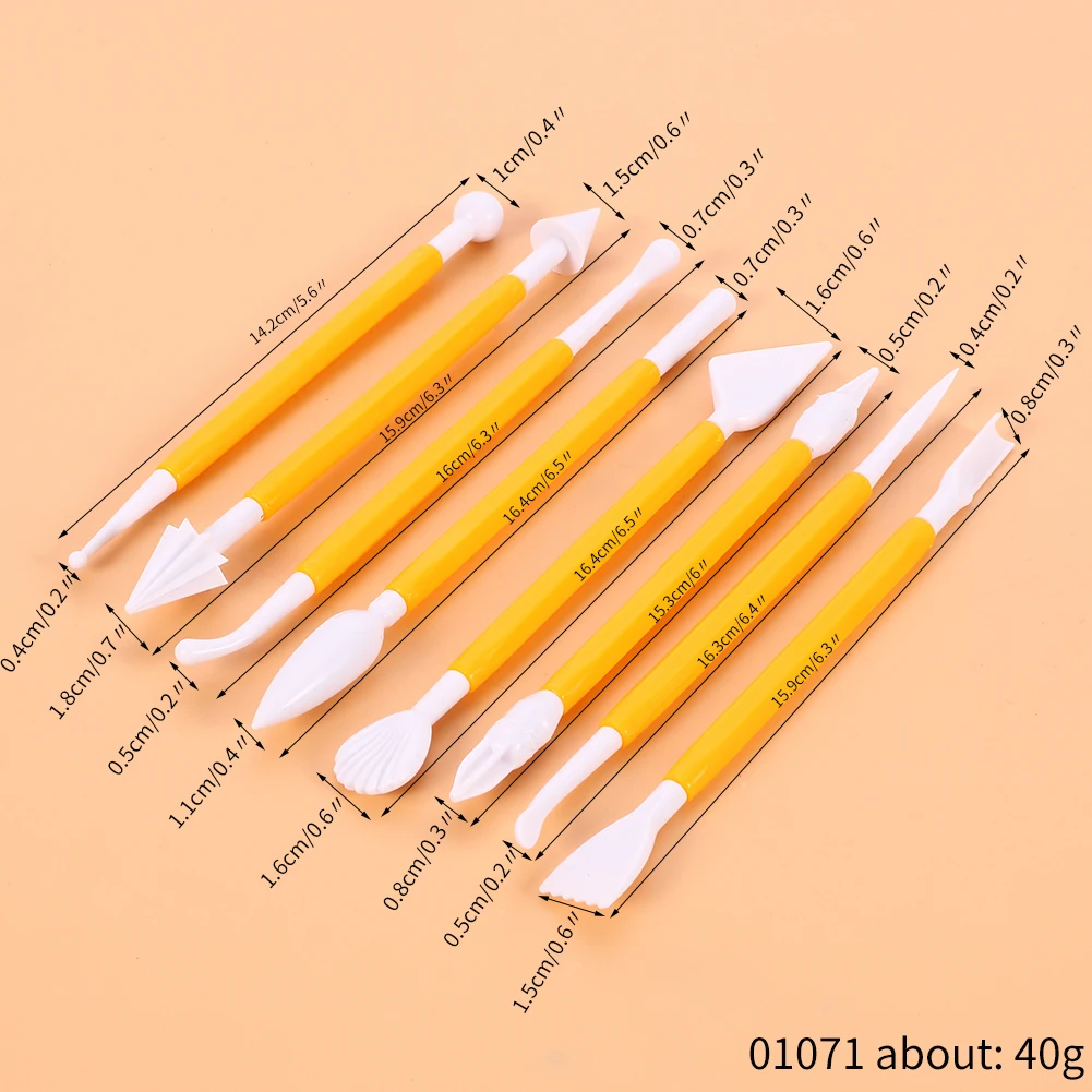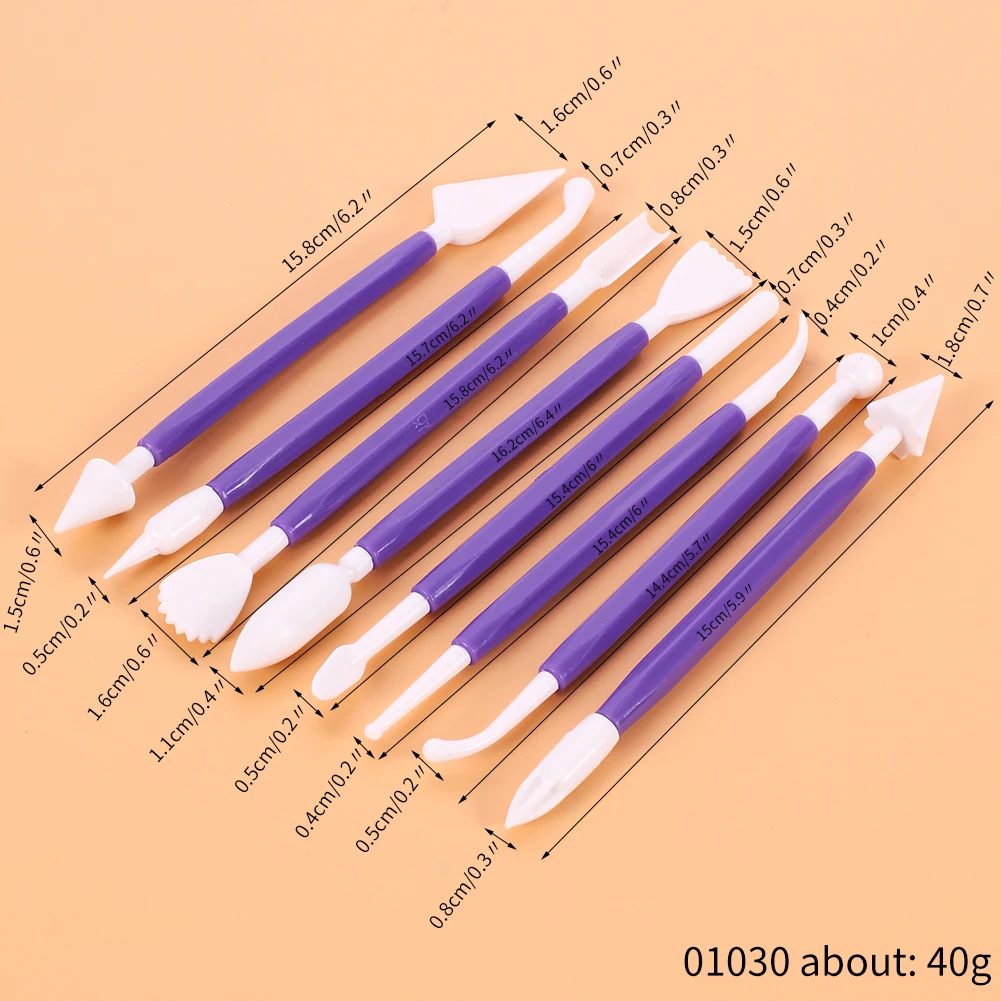 Технические характеристики: Материал: Пластик Размер: как на картинке Упаковка включает в себя: 8 x инструменты для моделирования Примечание: Из-за ручных измерений может быть небольшая разница в размере (1-2 см) и весе (1-7 г), пожалуйста, поймите.