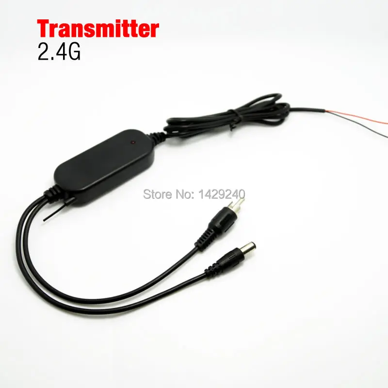Беспроводной передатчик с штекер RCA и мужской 3,5 мм штекер питания для подачи питания к камере.