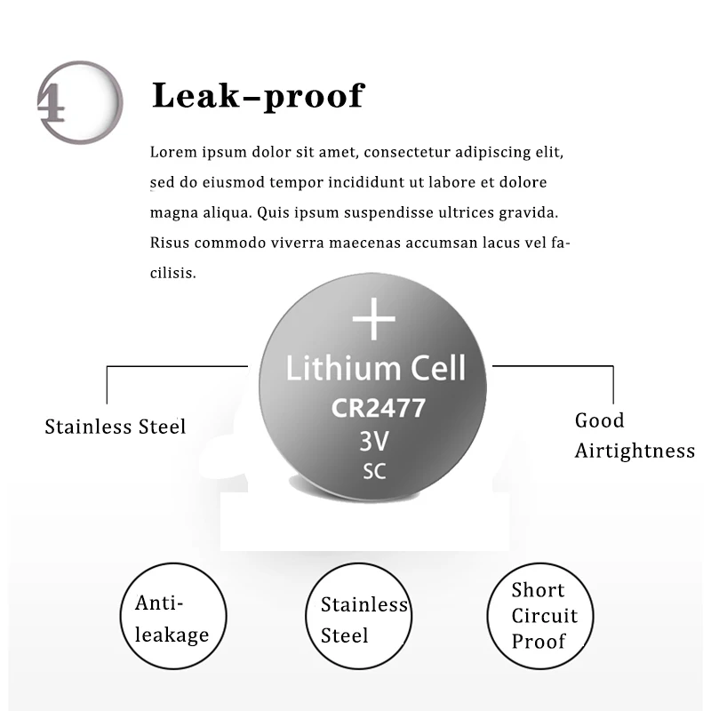 Тип батареи:Батарея CR2477 3V литиевая батарея BR2477