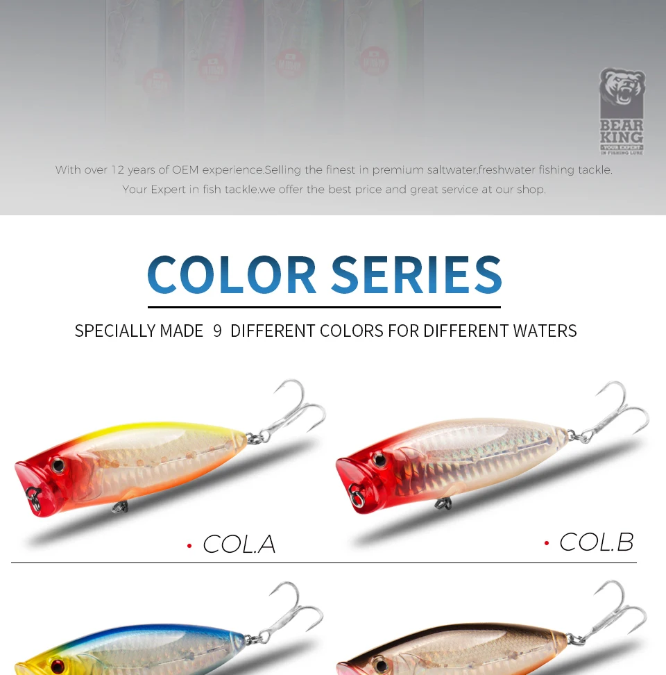 2017 популярная модель: 5 шт./лот рыболовные приманки, разные цвета, bearking crankbait popper 80 мм 20 г, плавающие, topwater