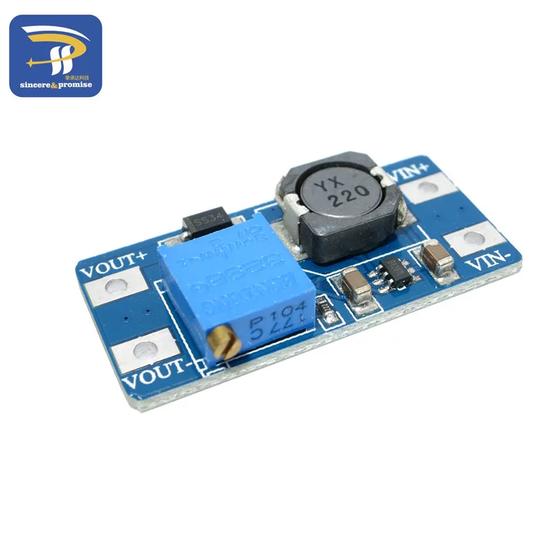 SX1308 бустер-модуль с чипом SX1308, его упаковка небольшая и высокая эффективность. Выходная мощность может быть настроена, максимум может прибыть 28 в и его внутренняя интеграция с самым низким внутренним сопротивлением RDS 100mΩ Металл оксид полупроводниковый полевой эффект транзистора (mosfet), который может реализовывать большой выходной ток до 2A. Он широко используется в 3G сетевых продуктах, цифровых продуктах, мобильном источнике питания, блоке питания батареи, оборудовании и т. д.