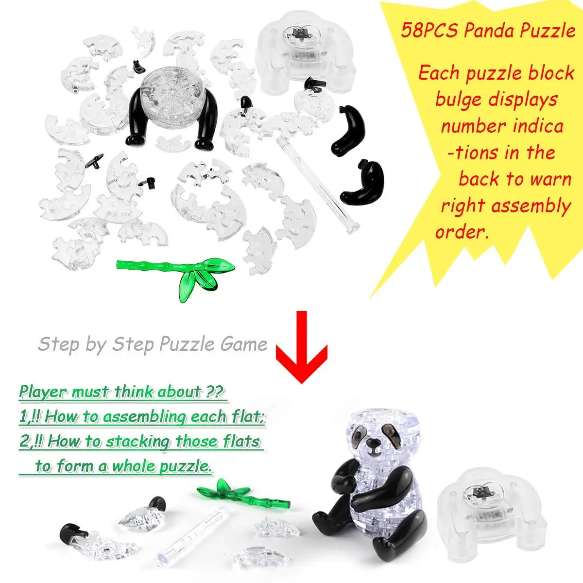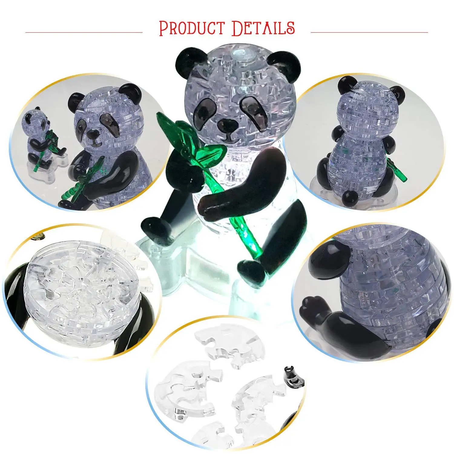 3D пазл с кристаллами панды и мигающими 3d-пазлами, собранные милые пазлы с животными, модель «сделай сам», интеллектуальные игрушки, подарок на день рождения для детей