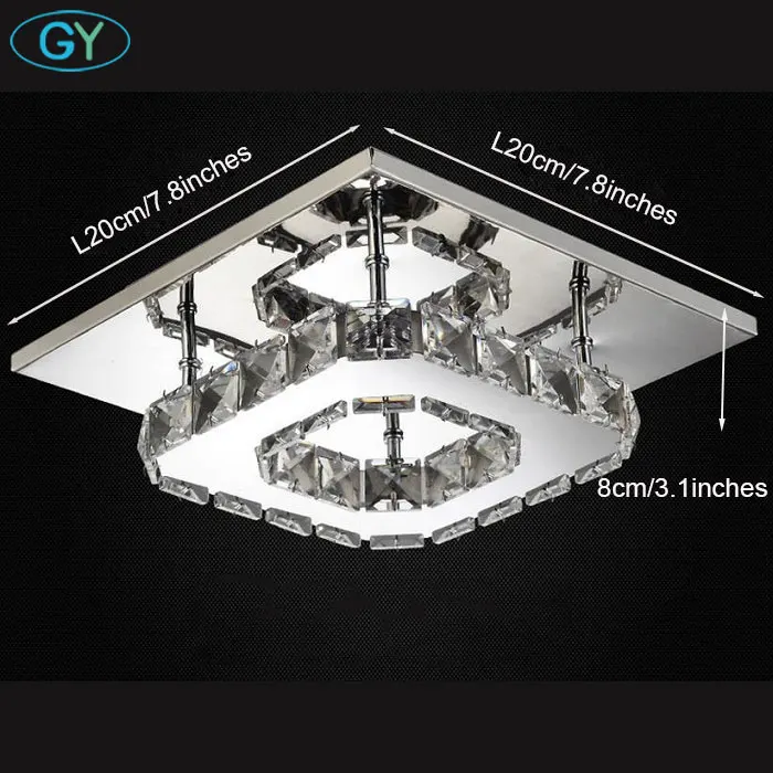 Материалы: светодиодный, кристалл, нержавеющая сталь Входное напряжение: 100 В-240 В переменного тока 50/60 Гц Источник света: светодиодный SMD Потребляемая мощность: 12 Вт Способ крепления: потолочный Режим управления: настенный выключатель Площадь освещения: 10 м ^ 2 до 15 м ^ 2 Цветовая температура: 3000-3500K для теплого белого цвета. 5500-6000K для холодного белого цвета