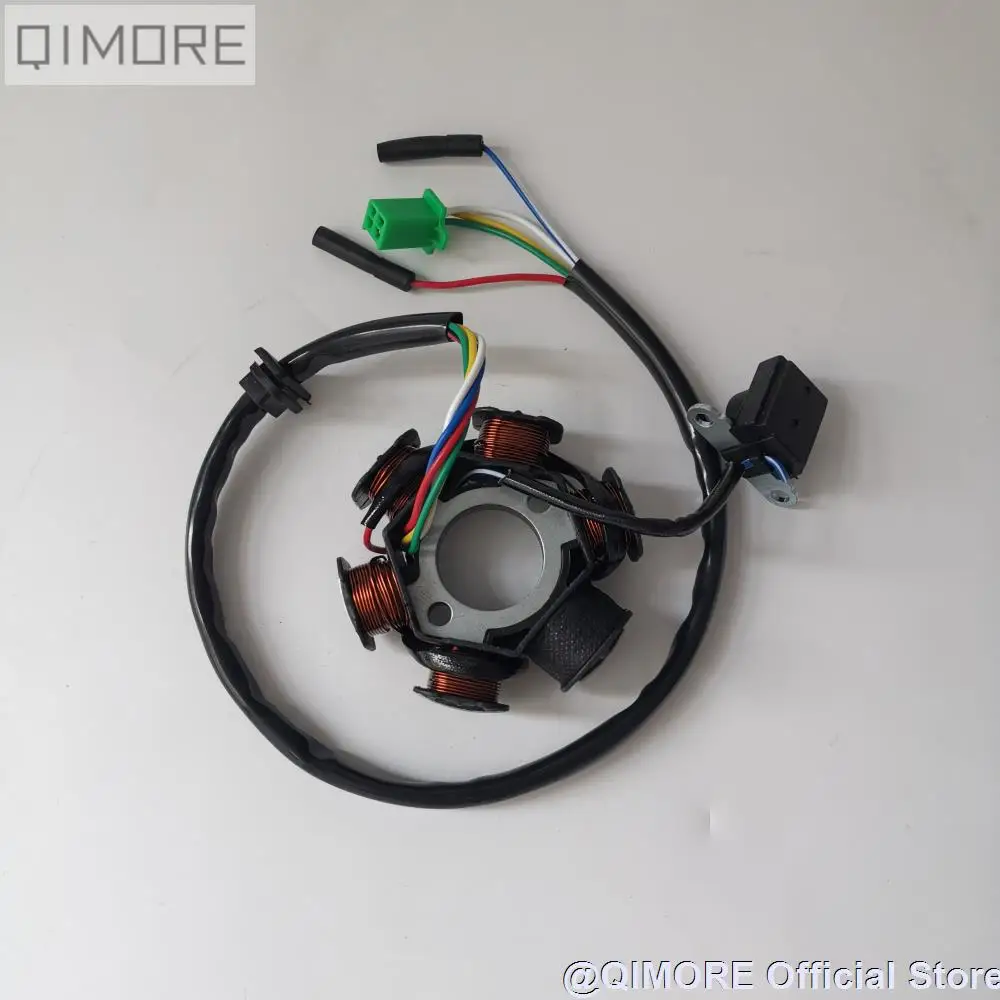 Есть два типа 6-полюсного статора GY6-125/150, один из них-Статор постоянного тока, другой-Статор переменного тока. Для 6-полюсного постоянного тока статора GY6-125/150 желтый провод соединяется на той же катушке, на которой сварен белый провод. Для 6-полюсного статора переменного тока GY6-125/150 желтый провод не сварен на той же катушке, на которой сварен белый провод. Пожалуйста, проверьте свой старый статор перед покупкой, чтобы убедиться, что вы получаете то, что вам нужно. Ваш скутер работает с системой постоянного тока, если вы можете включить фары без запуска двигателя. Чехол для системы, работающей от сети переменного тока, для включения фары необходимо запустить двигатель. Это звено 6-полюсного статора переменного тока GY6-125/150: Https:/item/1416487706.html