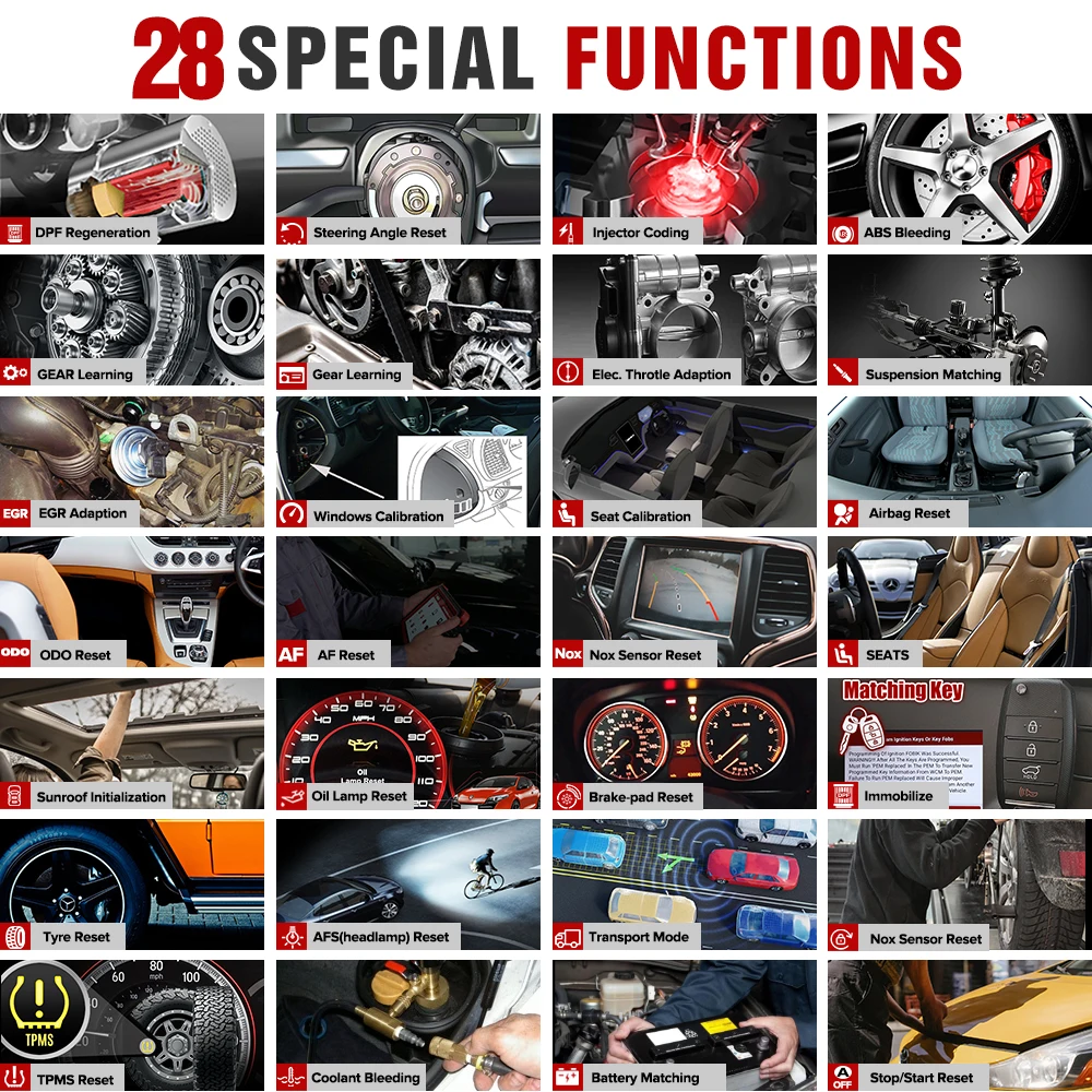 Кроме диагностической функции, thinktool mini также может быть инструментом сброса обслуживания, тогда вам не нужно покупать другой сервисный инструмент. 16 часто используемых функций включает в себя: сброс масла, сброс крыш солнца, обслуживание EPB, кровотечение ABS, Кодирование инжектора, сброс подвески, сброс коробки передач, сброс фар AFS, адаптация дроссельной заслонки, обучение передаче, сброс EGR, BMS, SAS,DPF, IMMO, Basic TPMS Reset service и т. д.