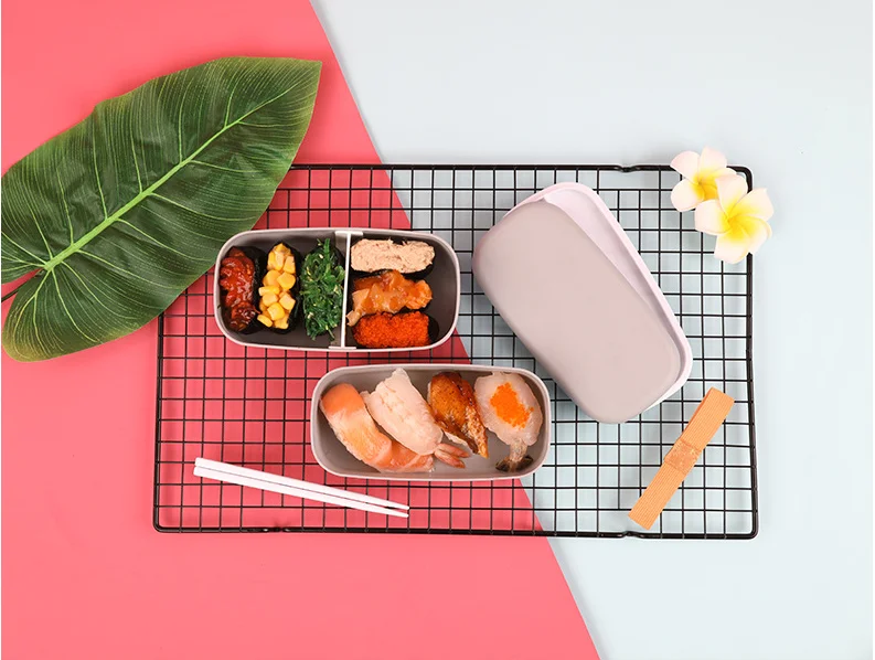 Пластиковые Детские двухслойные Ланч-боксы. Есть четыре цвета на выбор Серый, бежевый, розовый и темно-зеленый