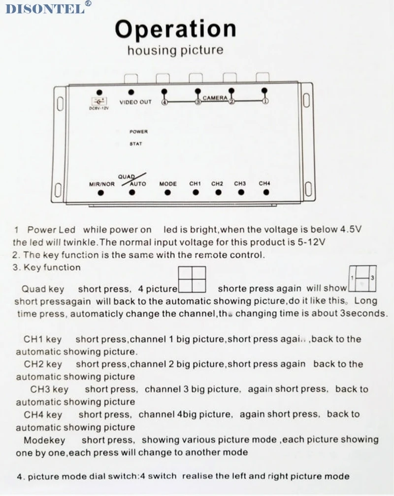 Четырехканальный Автомобильный видео контроллер с четырехдверным перегородкой, с зеркальным переключателем для каждой камеры