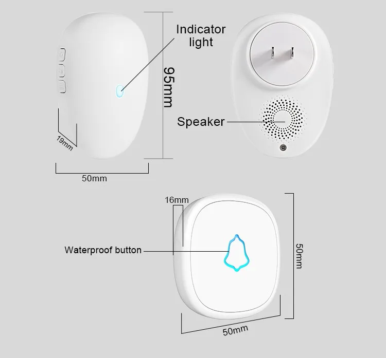 Высокочастотная технология передачи, перегородка также может передавать сигналы для удовлетворения бытовых потребностей, не беспокоясь о том, что не звонит в дверной звонок. Передача на расстоянии до 100 м, больше не боится не слышать дверной Звонок
