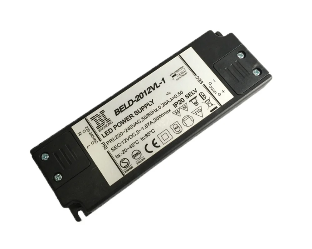 1.BELD-2012VL-1 : 20 Вт 12 В постоянного тока постоянное напряжение (Вход: 220-240 В) супер тонкий светодиодный драйвер