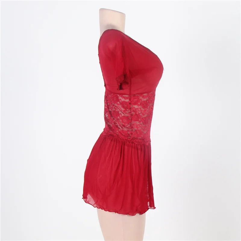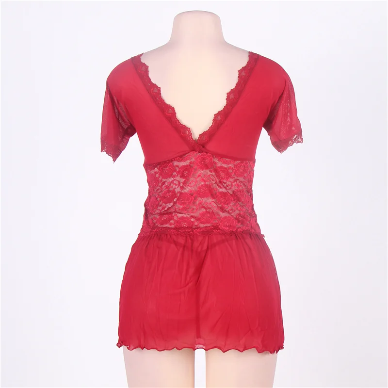Comeondear/красное женское нижнее белье с v-образным вырезом, кружевная ночная сорочка с коротким рукавом, сексуальное ночное белье эротического размера плюс, летняя ночная рубашка RA70335