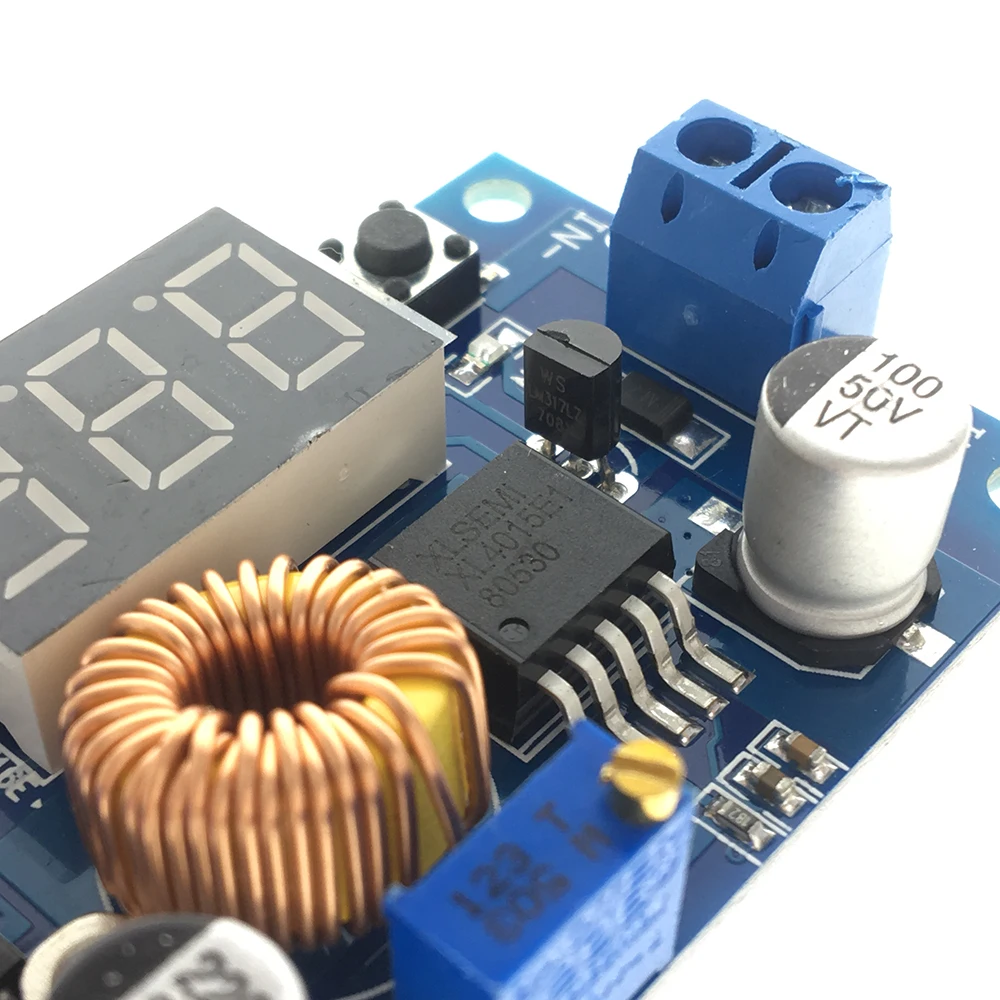 Бортовой измеритель напряжения метод самокалибровки:1. Бортовая Таблица напряжения показывает выходное напряжение, долго нажимайте на правую кнопку в течение двух секунд после выхода, Вольтметр и индикатор выходного напряжения «OUT» синхронно мигает, на этот раз в режим регулирования выходного напряжения; точно так же вольтметр показывает, когда входное напряжение, Нажмите на правую кнопку в течение двух секунд после выхода, Вольтметр и светодиоды входного напряжения «В» синхронно мигают, на этот раз в режим регулировки входного напряжения; 2. Сенсорный экран с правой стороны кнопки, вольтаж поднимается на одну единицу, прикоснитесь к \ tлевая кнопка, со снижением напряжения единиц; Потому что вольтаж, что стоимость единицы меньше, чем 0,1 V, поэтому вам нужно нажимать, для детей от 1 года до 5 лет раз подряд, чтобы увидеть вольтметр смена 0,1 V, Определенная непрерывная Кнопка несколько раз в зависимости от значения напряжения, отображаемого в настоящее время, чем выше напряжение на дисплее тока, тем меньше количество нажатия; 3. Когда напряжение регулируется, нажмите правую боковую кнопку в течение двух секунд после выпуска, на этот раз, чтобы выйти из режима калибровки напряжения, все параметры настроены для автоматического снижения заряда. Примечание: таким образом вам нужно только настроить точность выравнивания можно получить, как только значение напряжения по всему диапазону напряжения, эта функция более точна, чтобы удовлетворить ваши требования и дизайн, простота использования. Применение: Этот модуль может использоваться в поле в входное напряжение выше, чем выходное напряжение, как, например, аккумулятор и зарядное устройство силовых трансформаторов, сделай сам, регулируемого источника питания, 24В, футболка с принтом «Автомобиль» силы индустрии оборудования, 12 В 3,3 В, 12 В, 5 В, 24V поворот 5V, 24V переключатель 12V, е-байка 36В переключатель 24V нравится. Обратите внимание, что покупатели:Клиент не может быть отрегулирован, чтобы отразить выходное напряжение модуля всегда равно входному напряжению. Когда вы столкнулись с этой проблемой, пожалуйста, против часовой стрелки вращающийся потенциометр 10 кругов, затем используйте модуль, чтобы отрегулировать напряжение нормального. Из-за понижающего модуля, выходное напряжение по умолчанию составляет около 20 в.