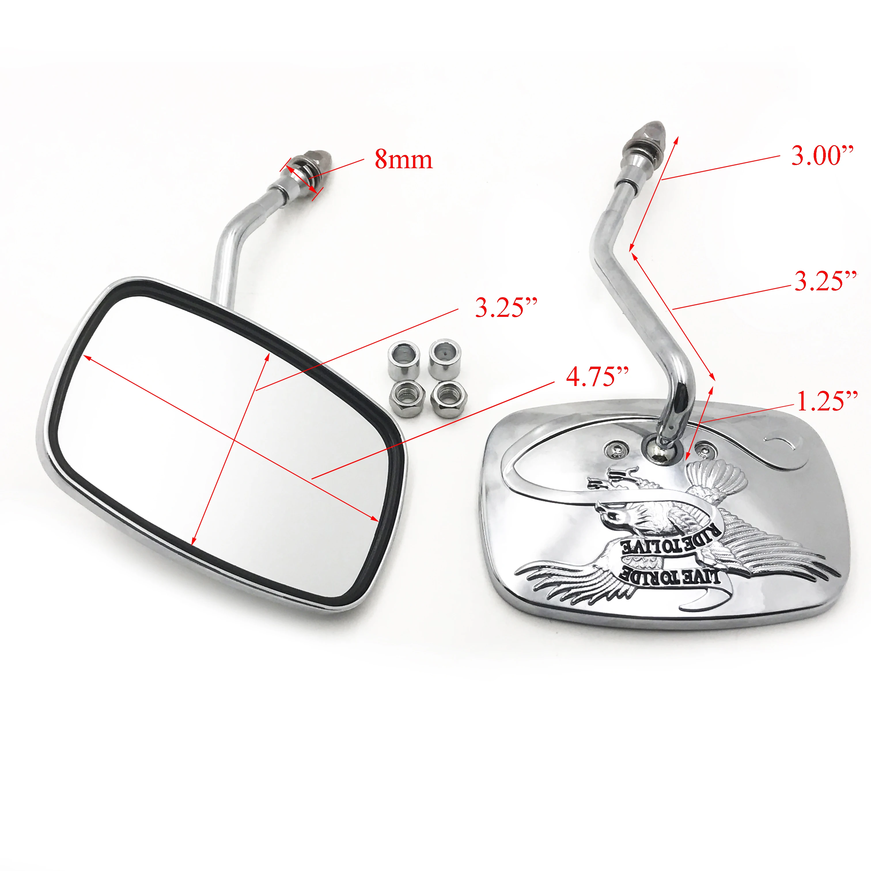 Рельефный американский Орел и слова «Live to Ride» на задней части зеркал